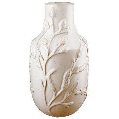 • Gilde Vase, Flasche, "Fiore", Blumenmuster, Keramik, creme, VE 2, H. 18 cm, D. 10
