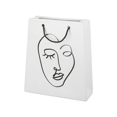 • Gilde Vase, rechteckig, "Visione", Gesichtsmotiv, Keramik, weiß, VE 2, L. 7 cm,