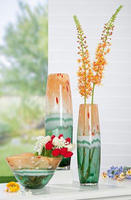 • Gilde Glasart, Vase, "Watermelon", gesprenkelt, Glas, grün, orange, VE 1, H. 40