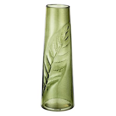 • GILDE Vase, konisch, "Blatt", Blattmotiv, Glas, grün, , H. 29,5 cm, D. 10 cm 50436
