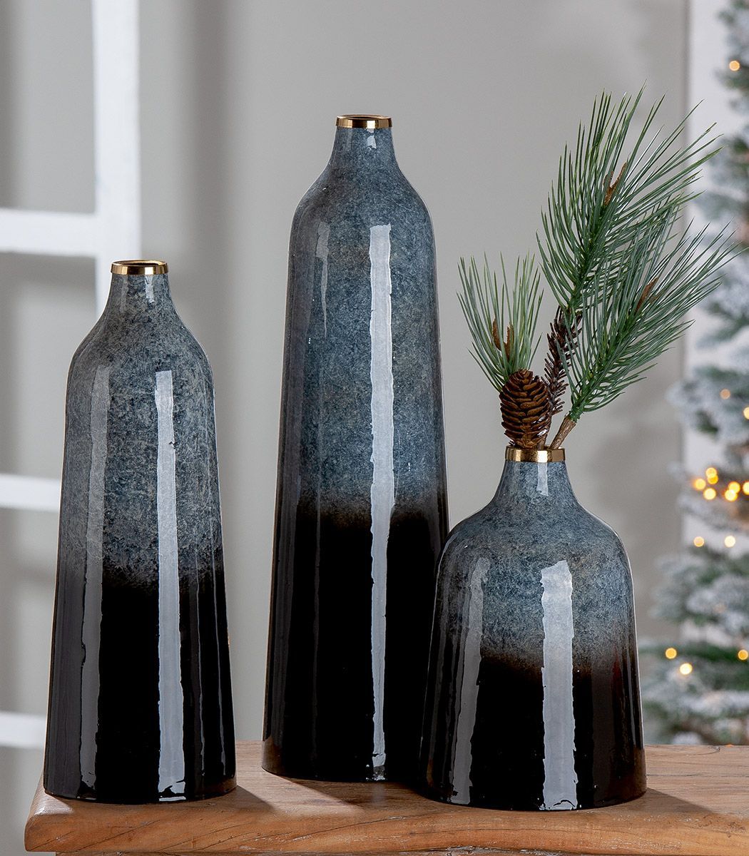 Gilde Gilde Vase konisch "Laver" Metall grau, schwarz 41159