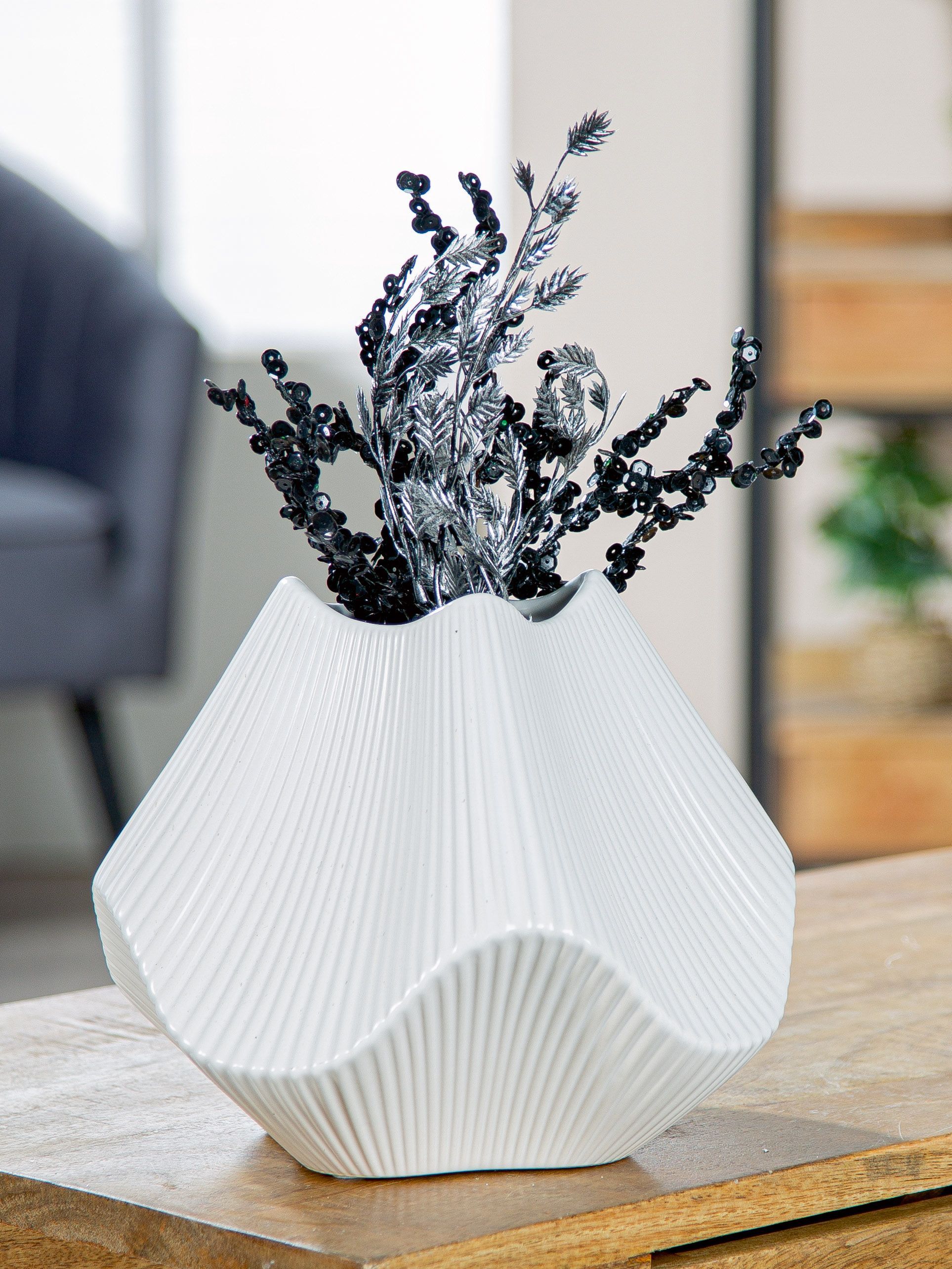 Gilde Gilde Vase, "Lamellen", Keramik, weiß, VE 1, L. 22 cm, B. 22 cm, H. 18.5 cm 55376