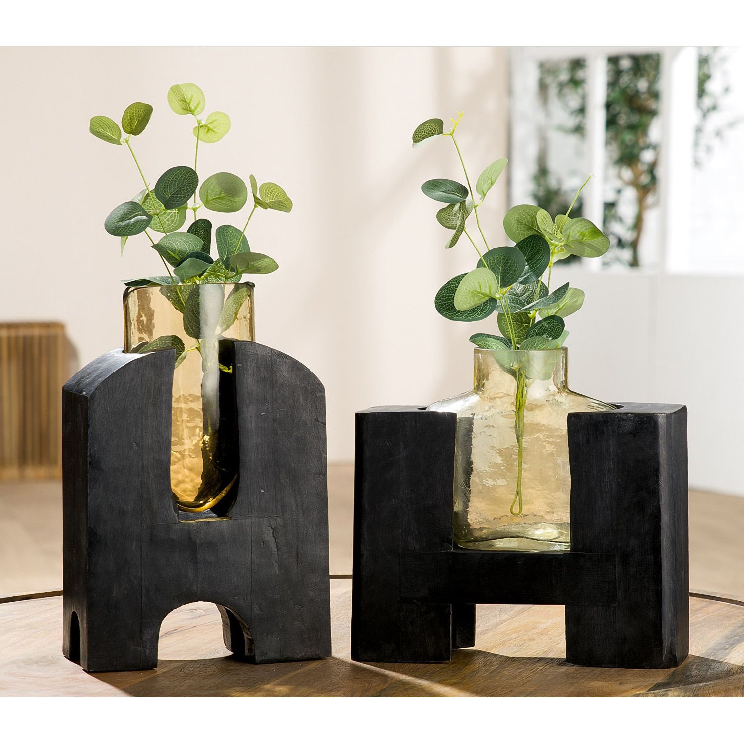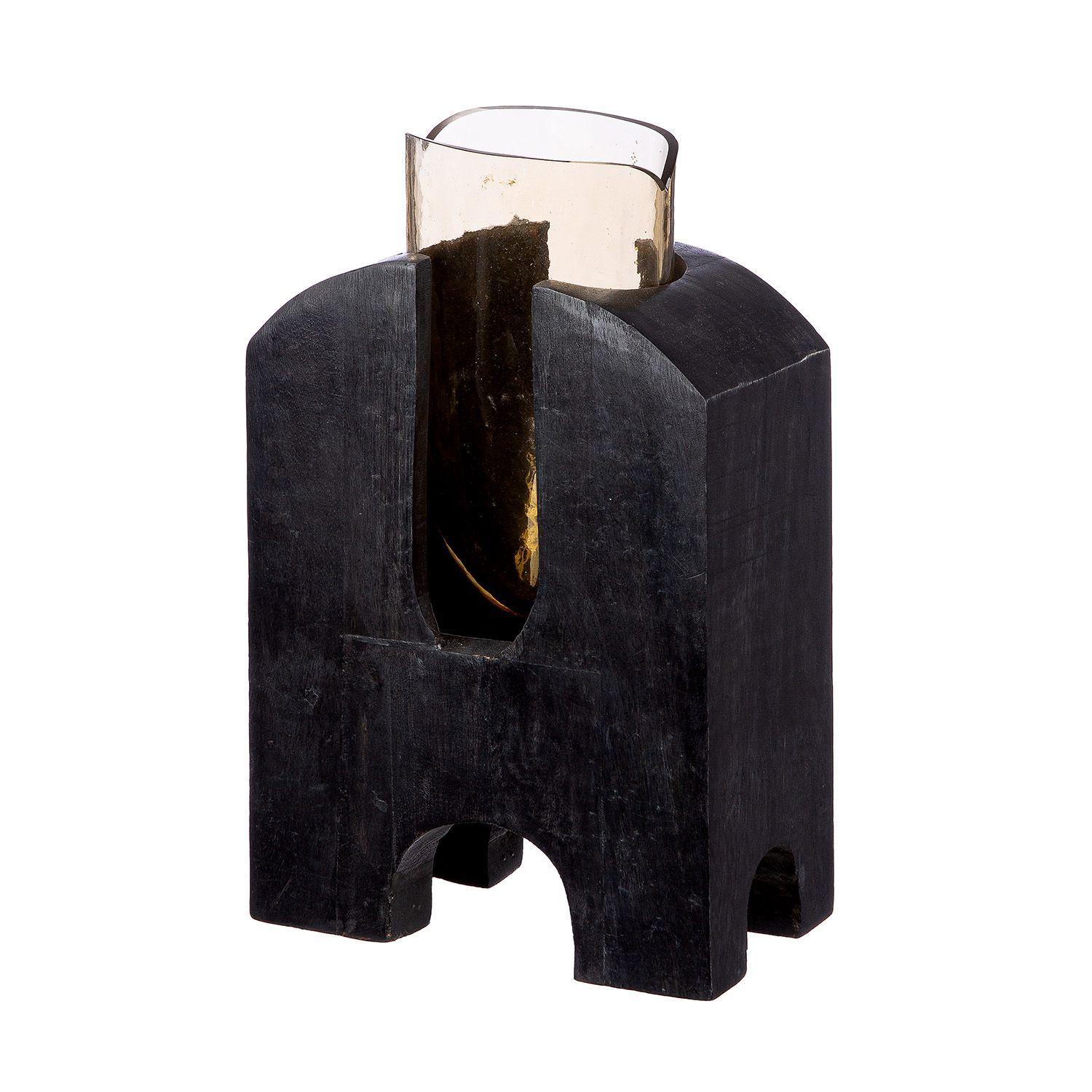 Gilde Gilde Vase, "Madero", Glas, Mangoholz, schwarz, VE 2, L. 9 cm, B. 17 cm, H. 28 cm