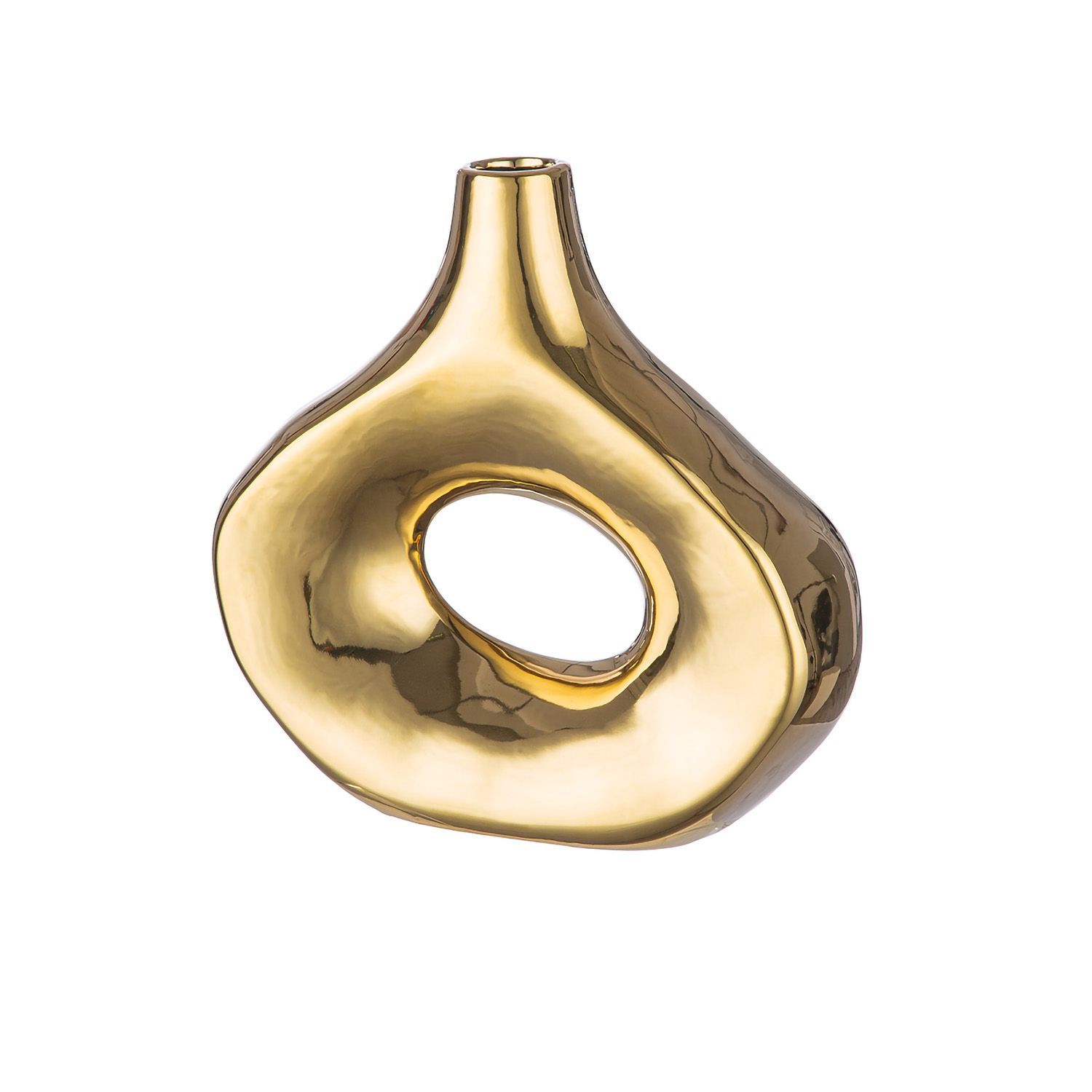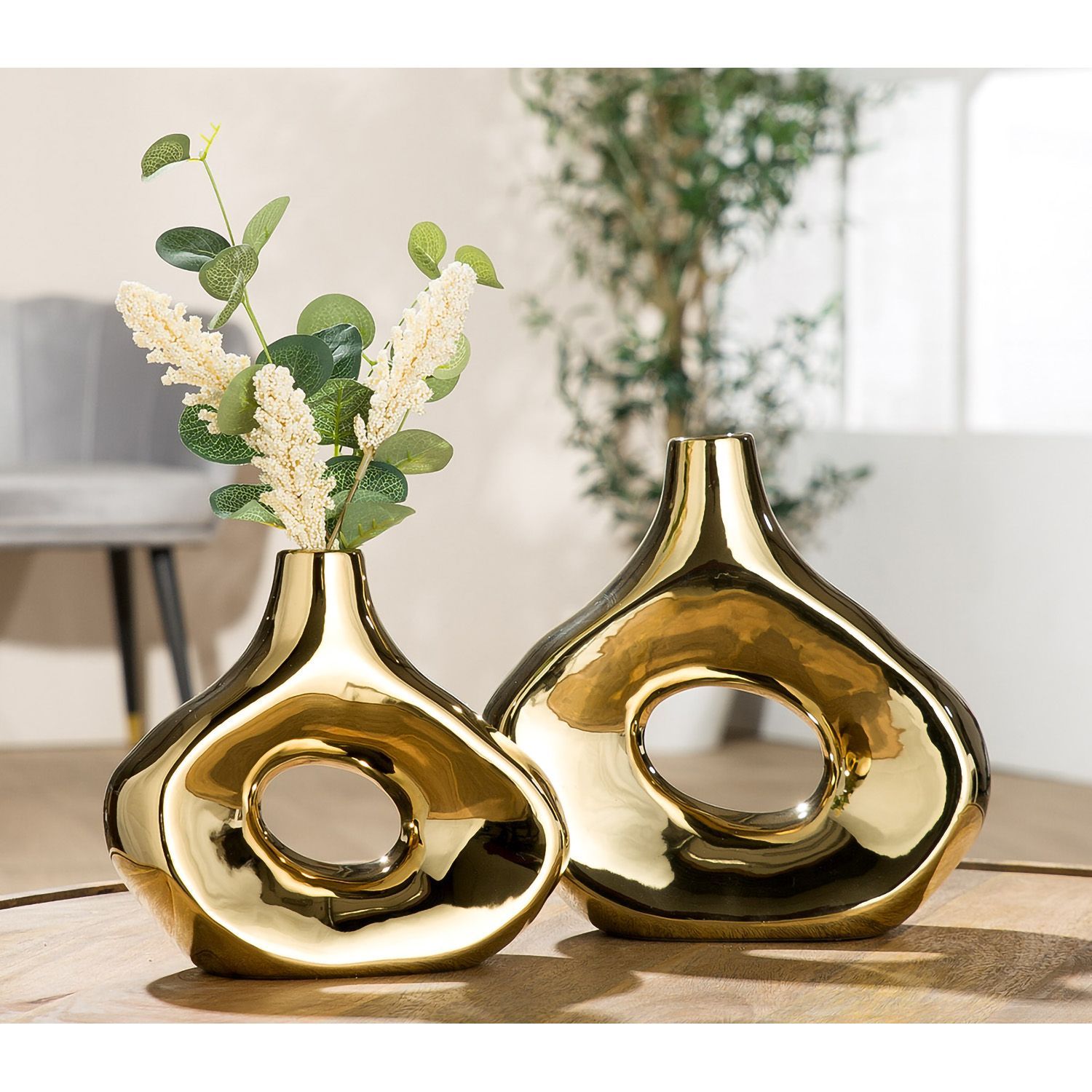 Gilde Gilde Vase, "Malta", Keramik, goldfarben, VE 2, L. 8.5 cm, B. 23.5 cm, H. 23 cm
