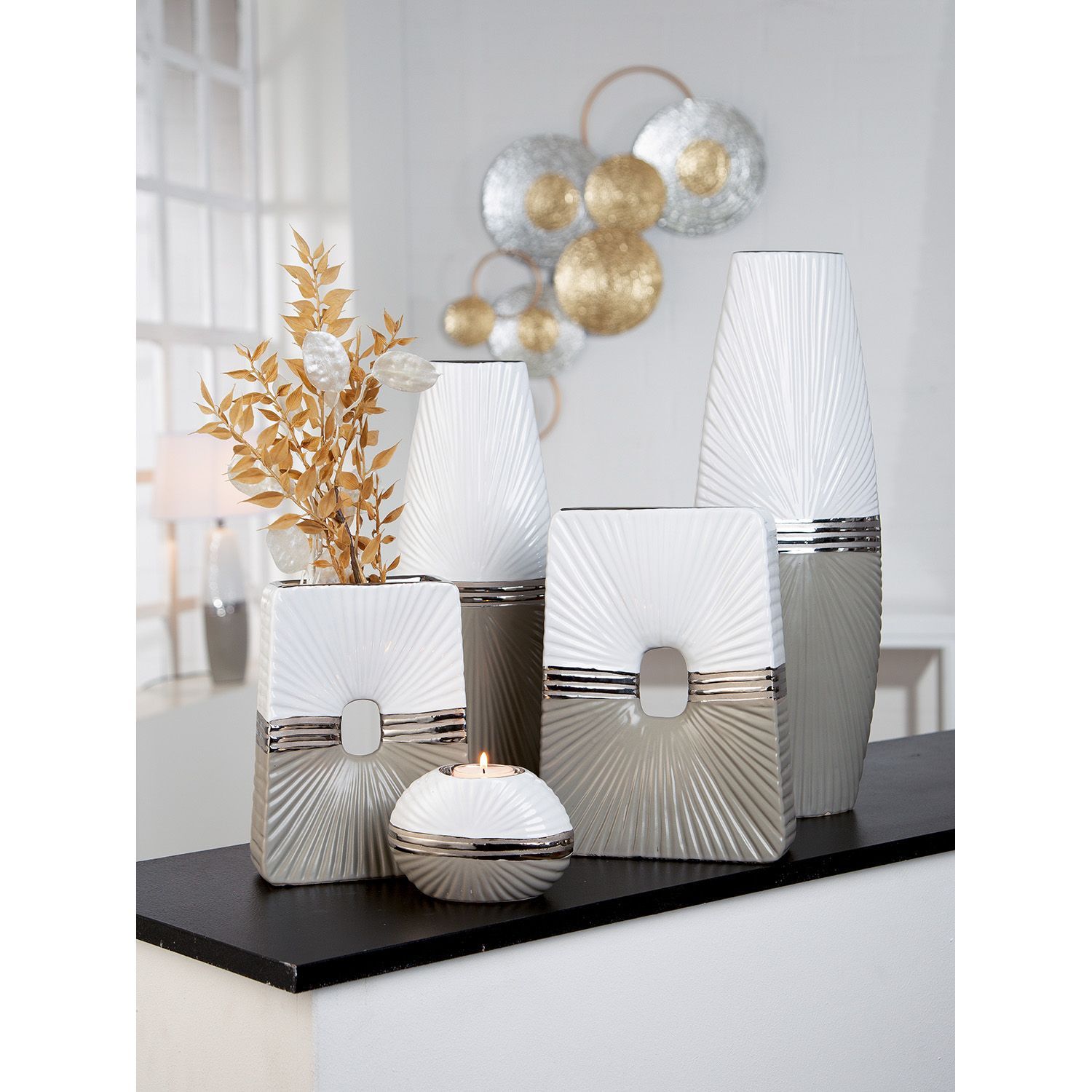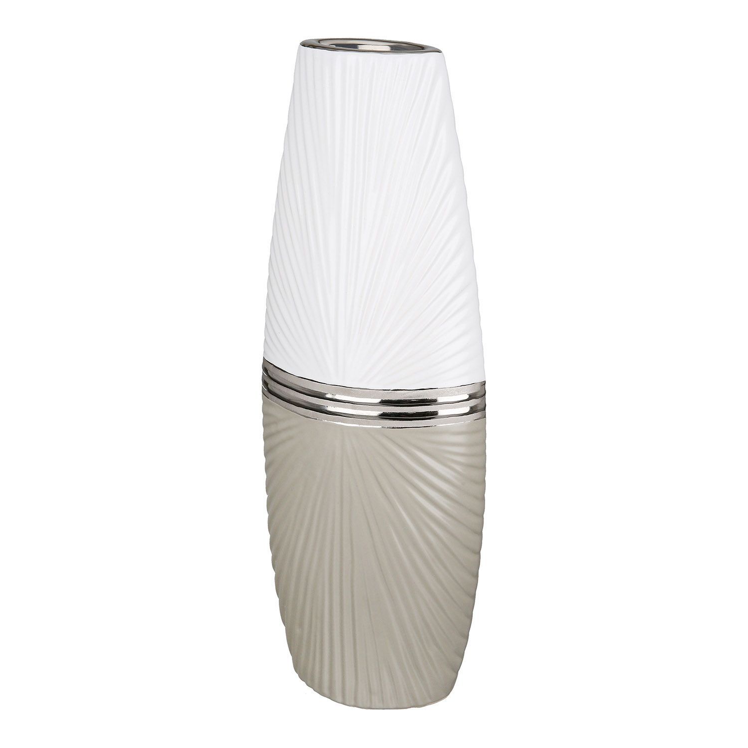 Gilde Gilde Vase, oval, "Bardolino", Keramik, grau, weiß, VE 2, L. 6.5 cm, B. 12.5 cm,