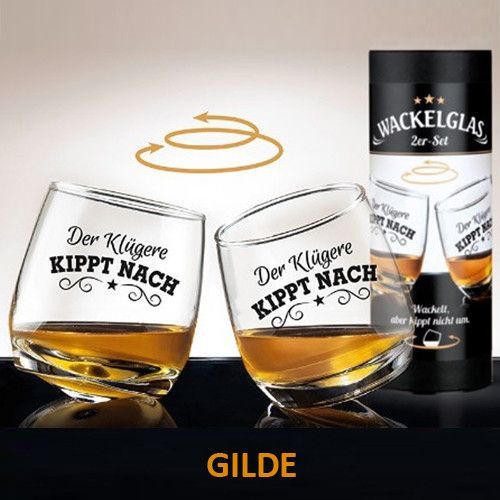 Gilde Gilde Wackelglas 2er Set Seegang Klügere kippt nach Glas Geschenk Kreisel NEU