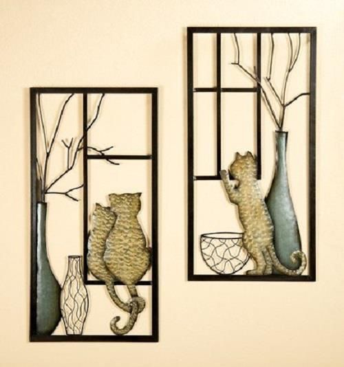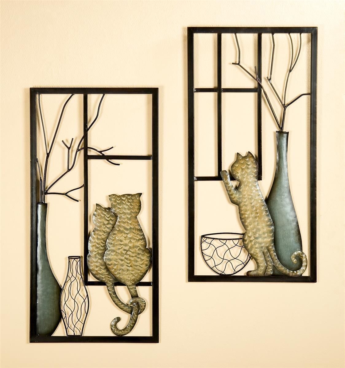 Gilde Gilde Wandrelief mit Vase und Katze 2 tlg. beige, braun, grau Breite 40,0 cm Höhe