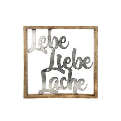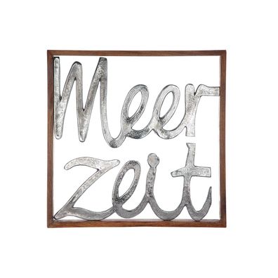 • Gilde Wandrelief, quadratisch, "Meerzeit", Schriftzug, Aluminium, Mangoholz, silbe