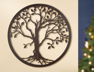 Gilde Wandrelief, rund, "Baum des Lebens", Lebensbaummotiv, Metall, dunkelbraun,
