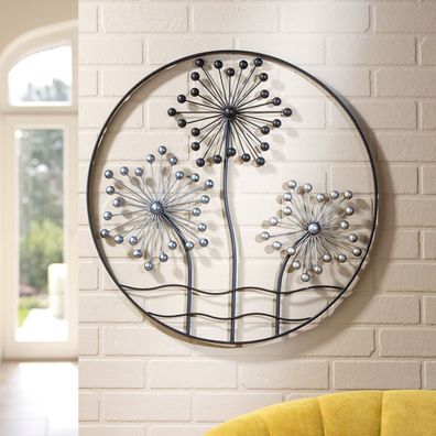 • Gilde Wandrelief, rund, "Wildblumen-Wiese", Blumendesign, Metall, dunkelbraun, ,