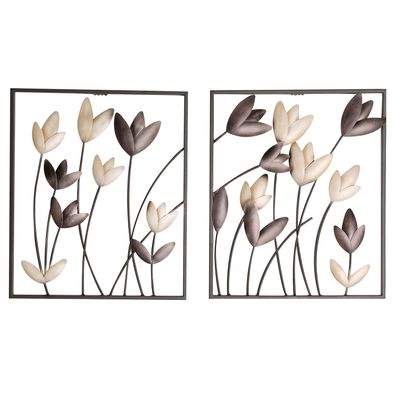 GILDE Wandrelief, rechteckig, "Tulip", Blumendesign, Metall, braun, creme, , 2