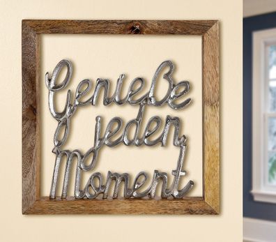 • Gilde Wandrelief, quadratisch, "Genieße jeden Moment", Spruch, Aluminium, Mangohol