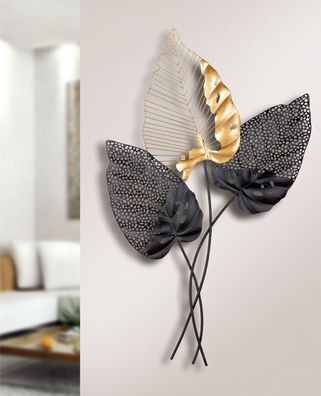 • Gilde Wandrelief, "Blossom", Metall, anthrazitfarben, goldfarben, schwarz, VE 1,