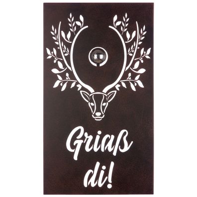 • Gilde Wandrelief, rechteckig, "Griaß di!", Hirschmotiv, Schriftzug, Metall, braun,