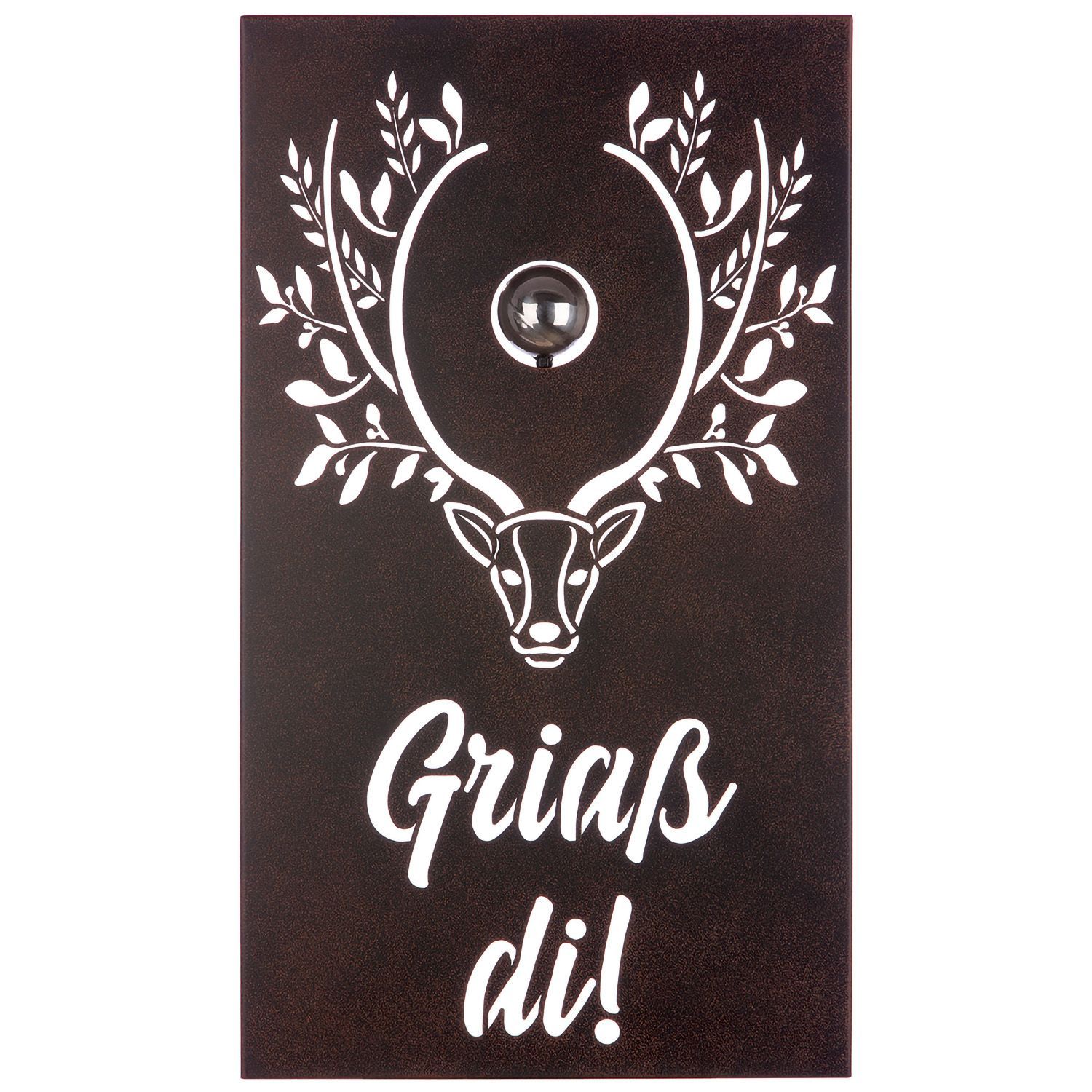 Gilde Gilde Wandrelief, rechteckig, "Griaß di!", Hirschmotiv, Schriftzug, Metall, braun,