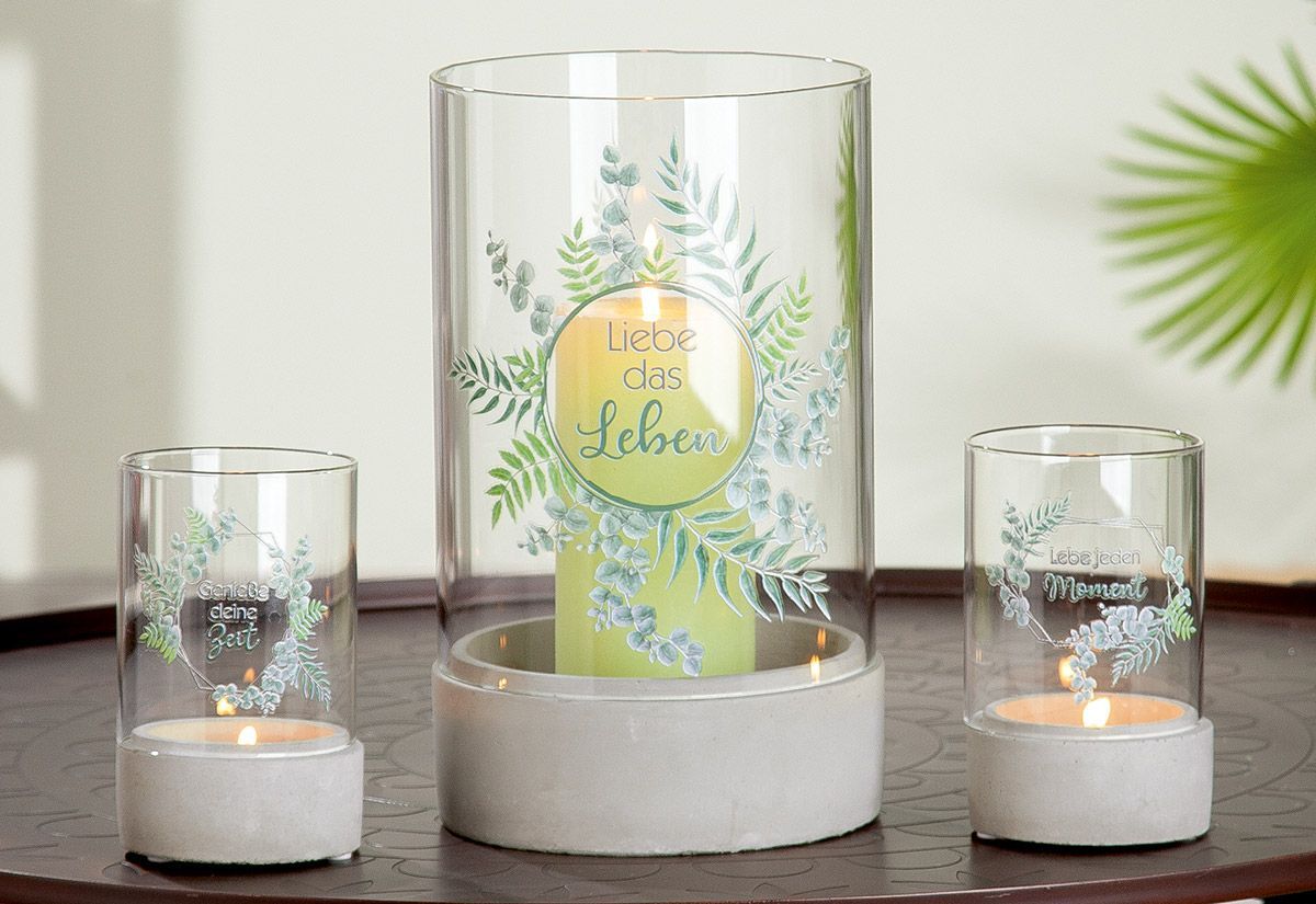 Gilde Gilde Windlicht "Lebenswert" Glas, Zement grau, grün 31169