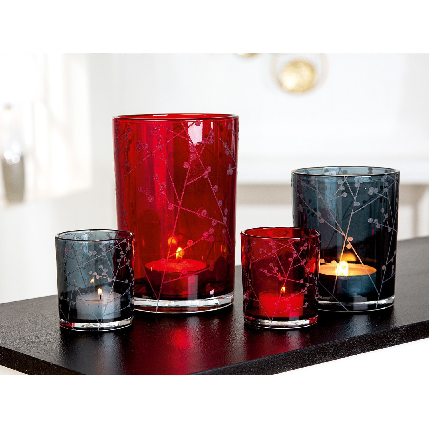 Gilde Gilde Windlicht, zylindrisch, "Zweig", Zweigmotiv, Blumenmuster, Glas, rot, schwar