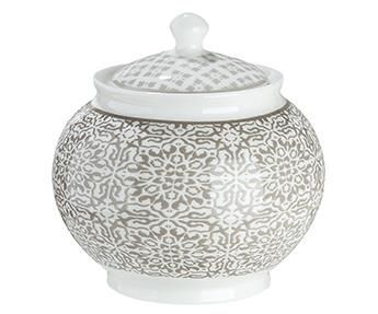 Gilde Gilde Zuckerdose "Grey Ornaments" im Ornamentdesign Bella Vita aus Knochenporzella