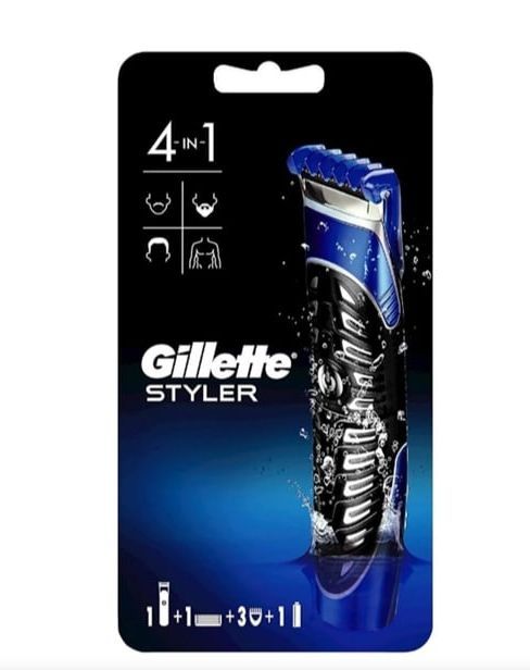 Gillette Styler 4-in-1-Rasierer Enthält 1 Trimmer, 1 ProGlide-Klinge, 3 Aufsätze (für verschiedene Bartlängen), 1 Batterie. Ermöglicht einfaches Trimmen des Bartes. Von Braun entwickelte Technologie mit Easy Grip Griff für präzises Trimmen des Bartes im Gesicht oder am Körper. Er ist so konzipiert,