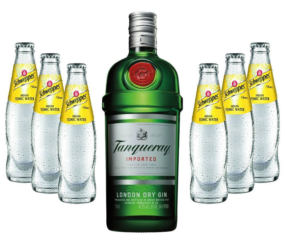 Tanqueray Gin Tonic Set - Tanqueray London Dry Gin 0,7l 700ml (47,3% Vol) + 6x Schweppes