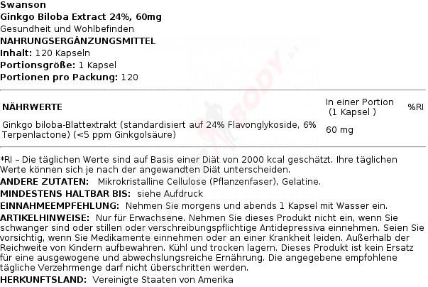 • 4 x Swanson Ginkgo Biloba Extract 24%, 60mg - 120 caps