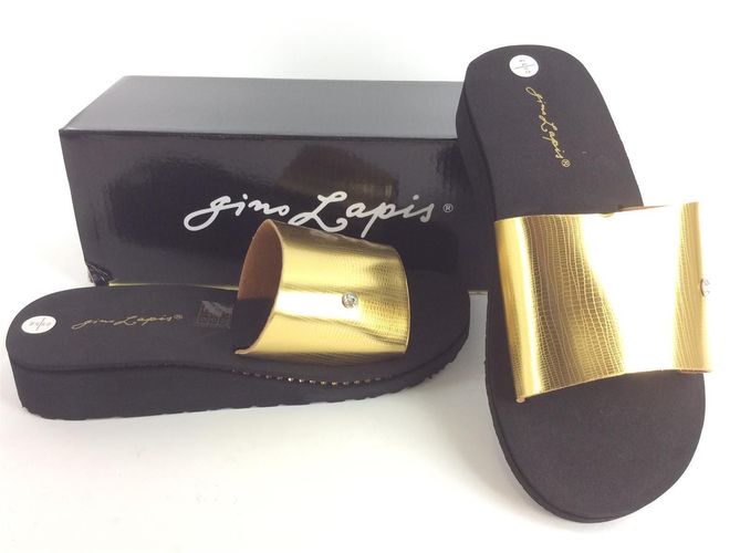 Gino Lapis Damen Keil Pantolette gold mit Glitzerbordüre