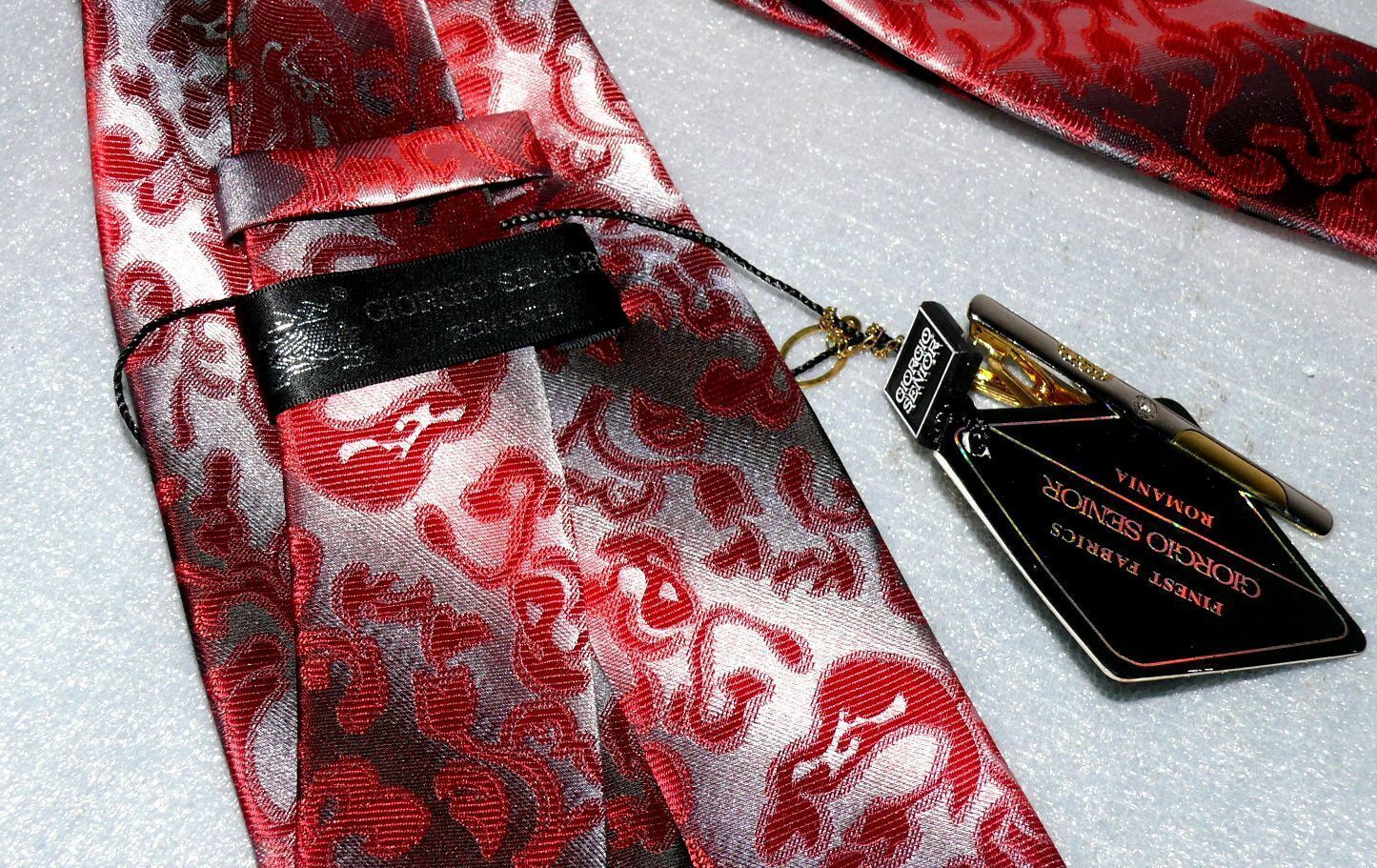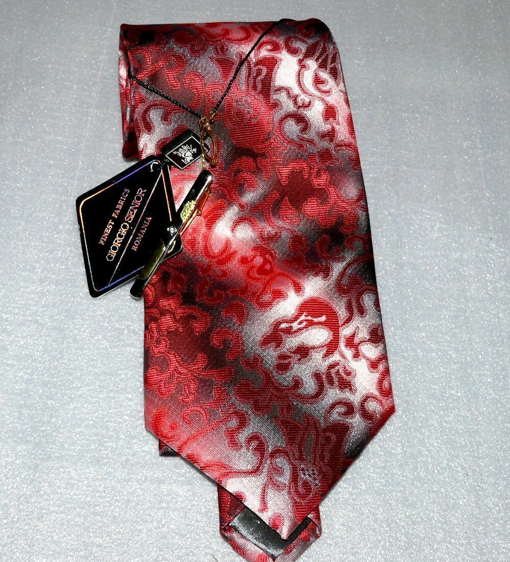 Giorgio Senior Designer Seidenkrawatte Business Krawatte Seide Rot Dk. Grau Nr.3