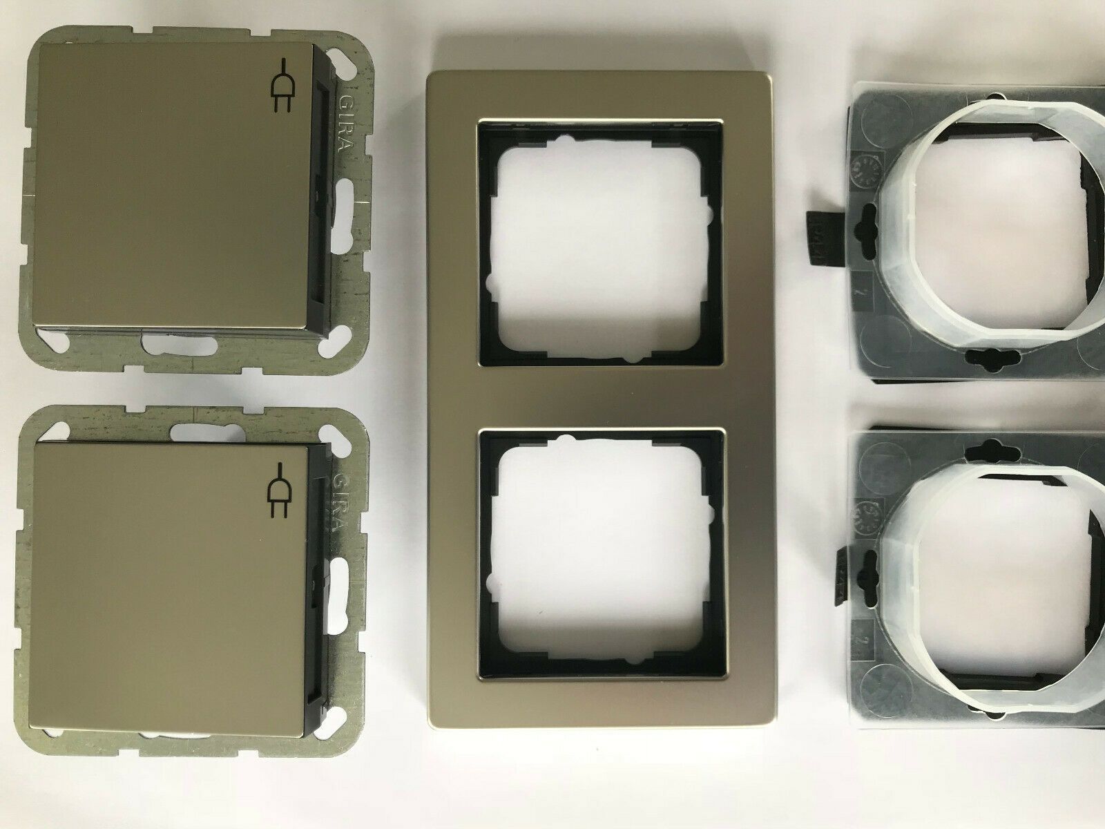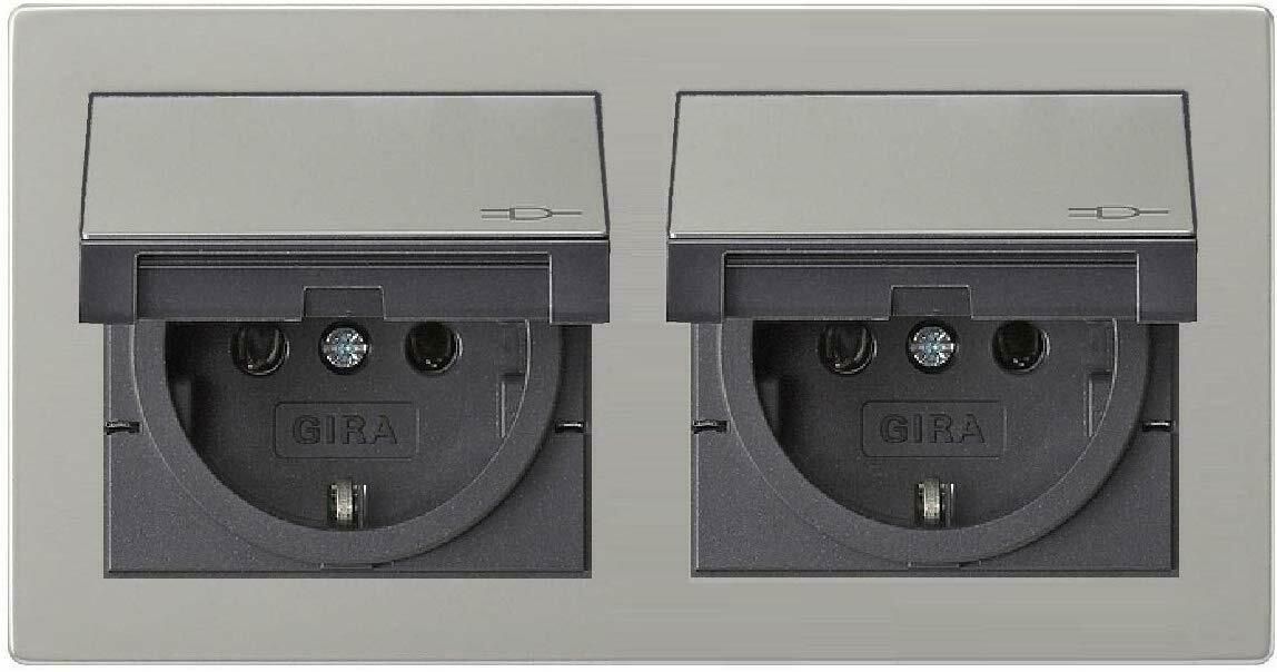 Gira Gira E2 Edelstahl Doppel-Steckdose mit KD und Rahmen IP44 Komplettset