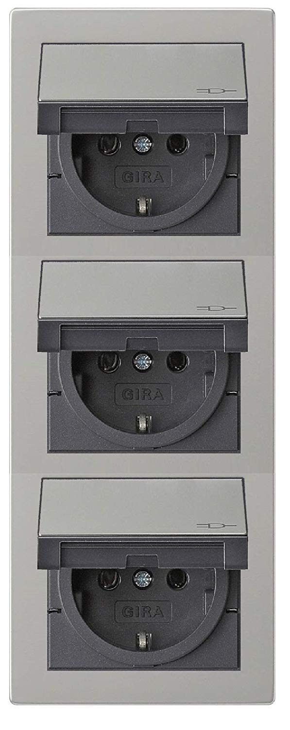 Gira Gira E2 Edelstahl Dreifach-Steckdose mit KD und Rahmen IP44 Komplettset