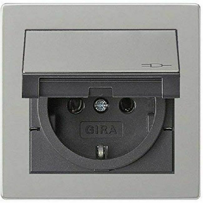 Gira Gira E2 Edelstahl Steckdose mit Klappdeckel und Rahmen IP44 Komplettset
