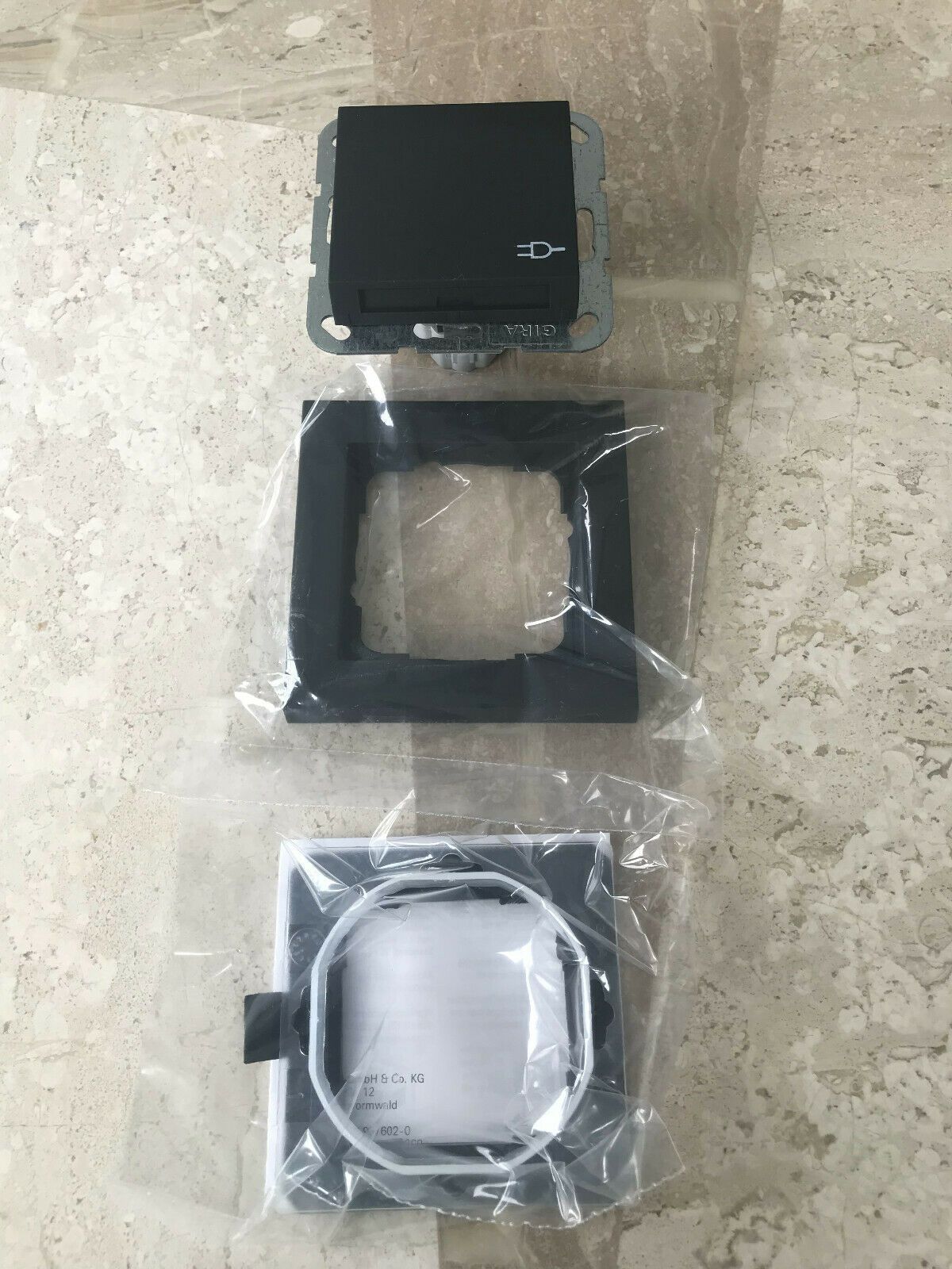 Gira Gira E2 Schwarz Matt Steckdose mit Klappdeckel und Rahmen IP44 Komplettset