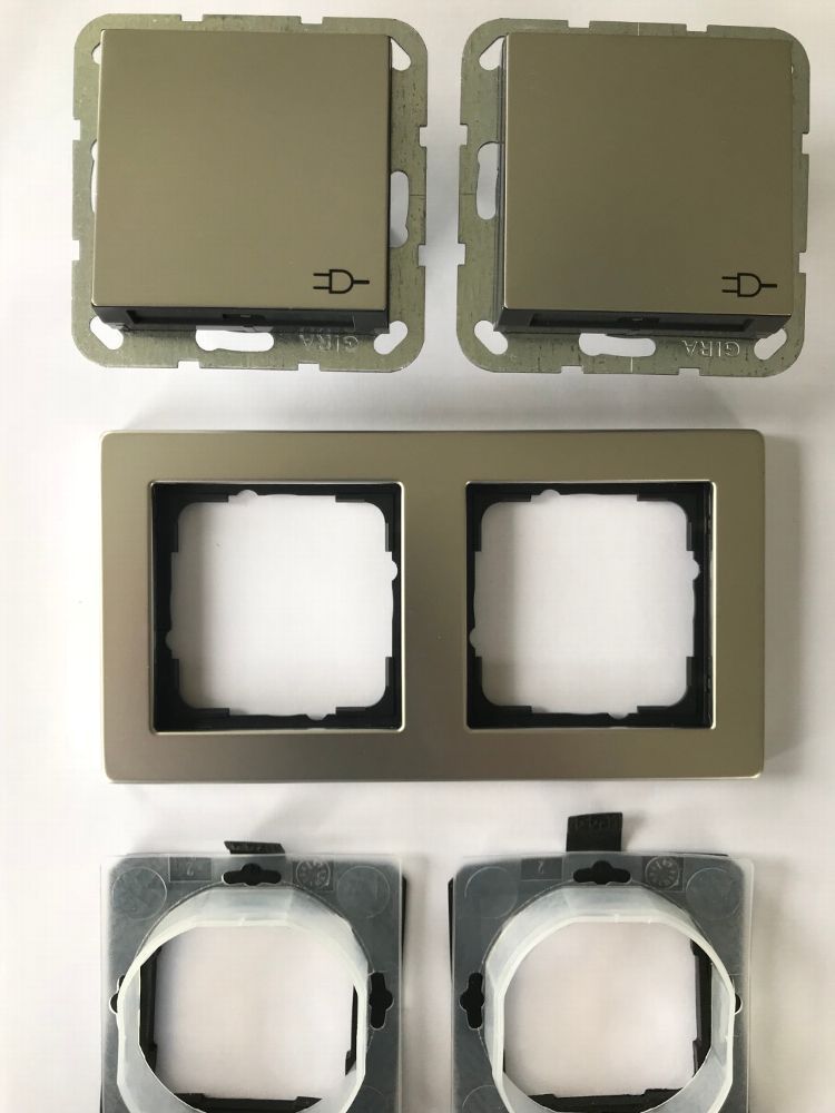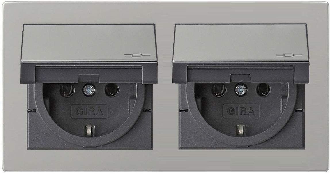 Gira Gira Edelstahl E2 Doppel-Steckdose mit Klappdeckel und Rahmen IP44 Komplettset