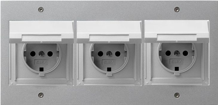 Gira Gira TX44 Dreifach-Steckdose mit Klappdeckel und Rahmen alu IP44 Komplettset