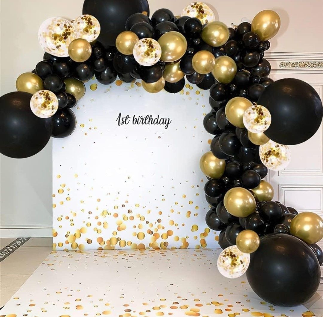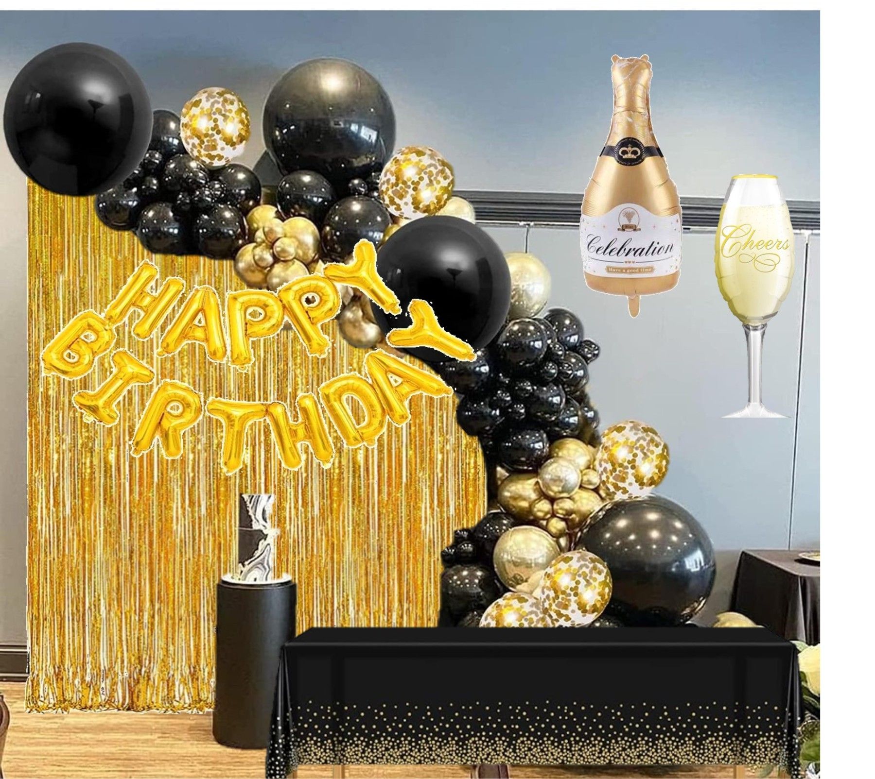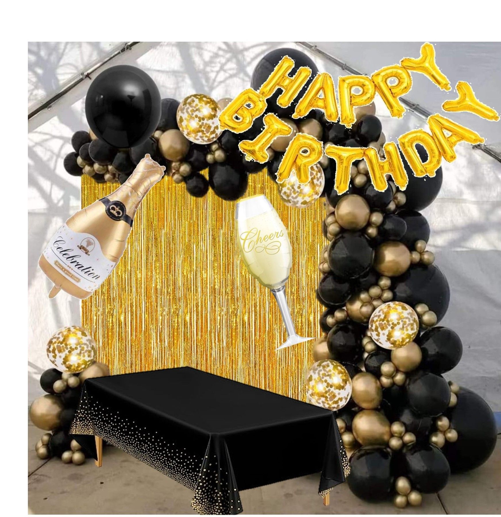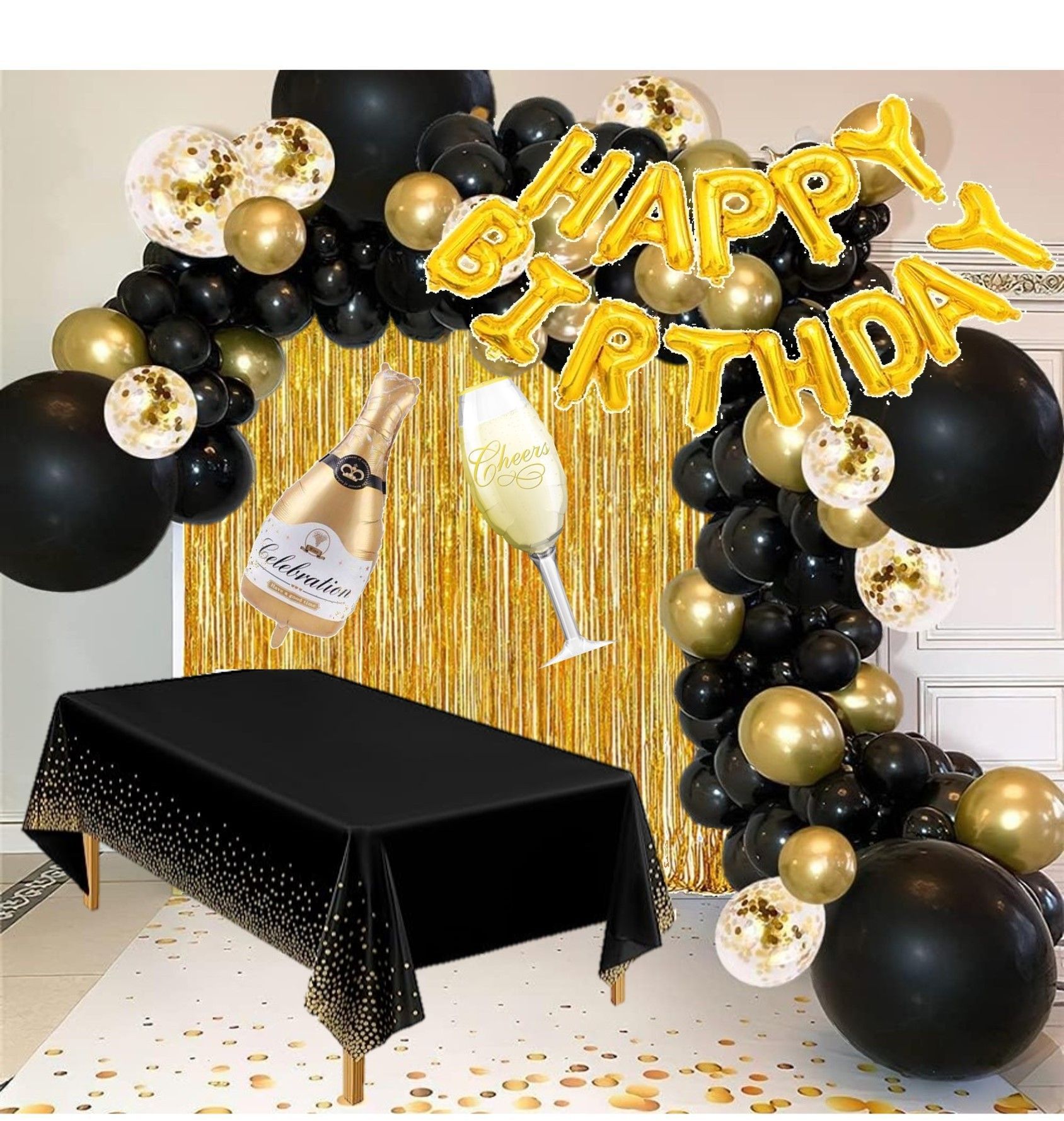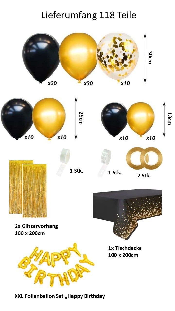 Girlande Ballonbogen schwarz gold Party Set Deko Geburtstag Feier Tischdecke Vorhang