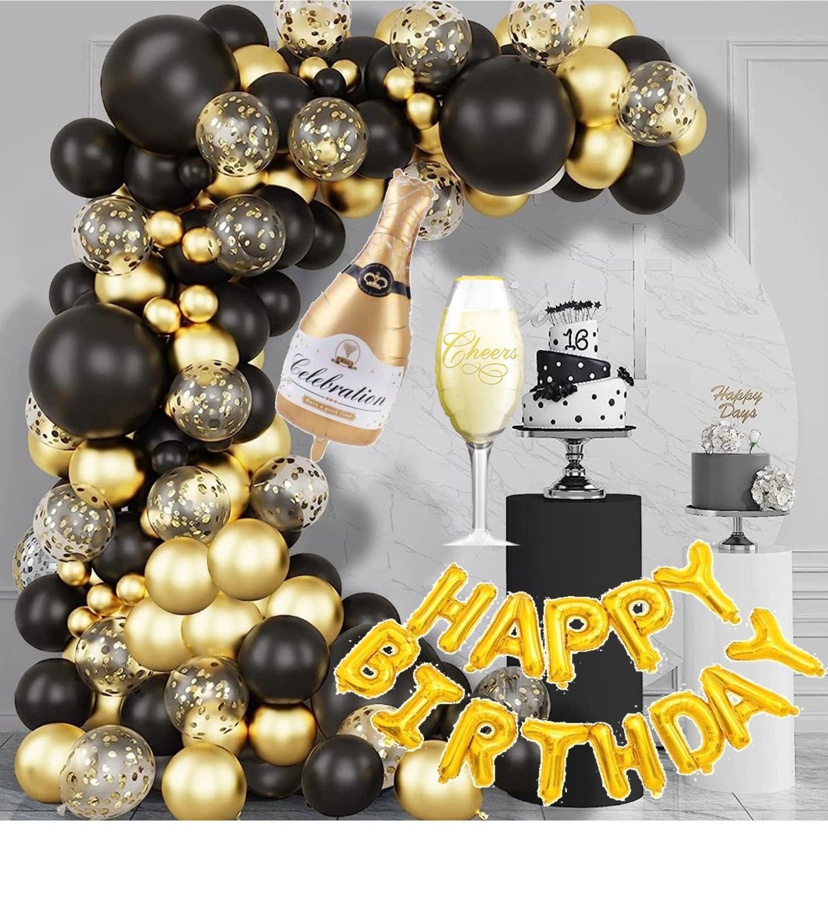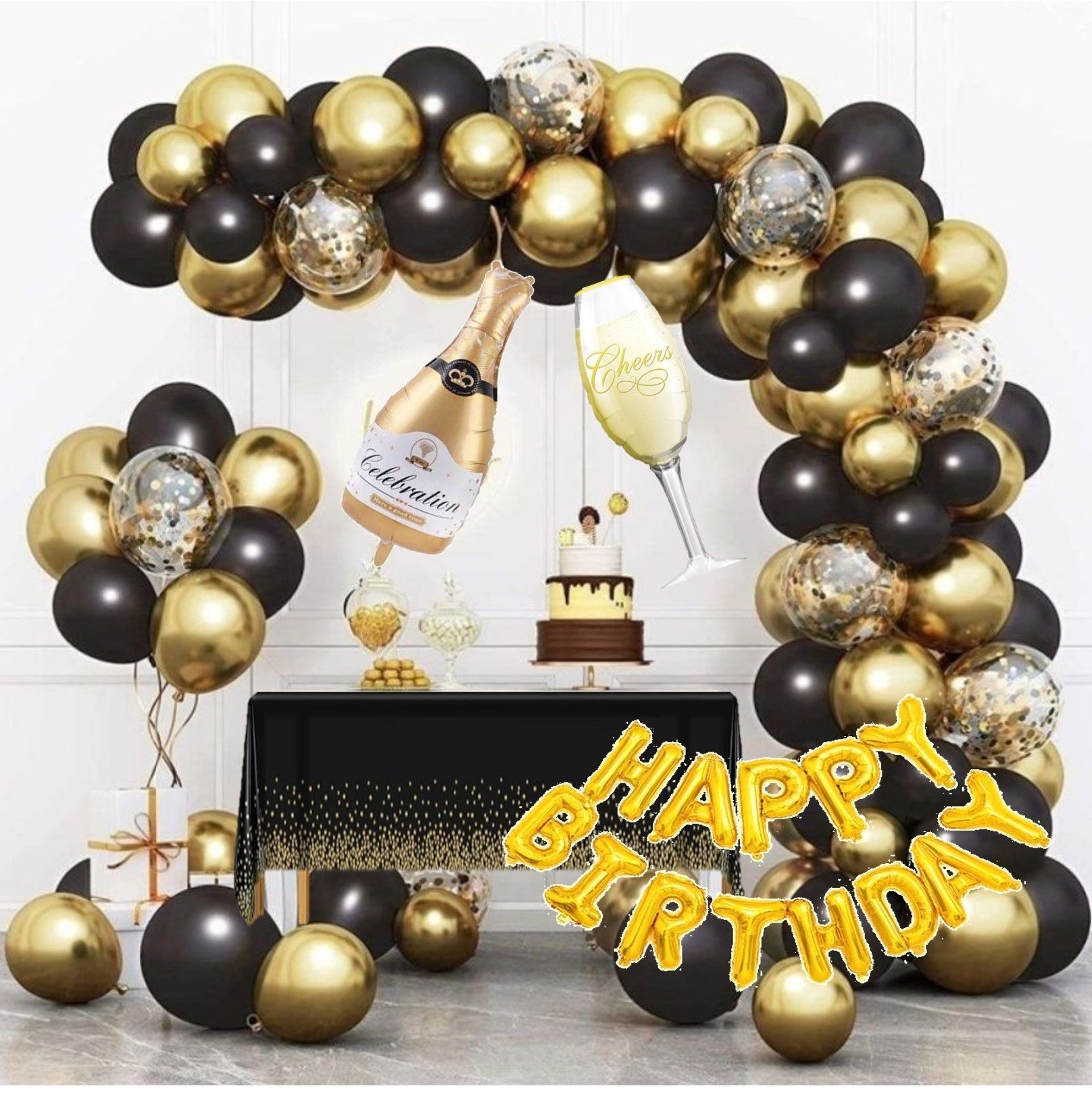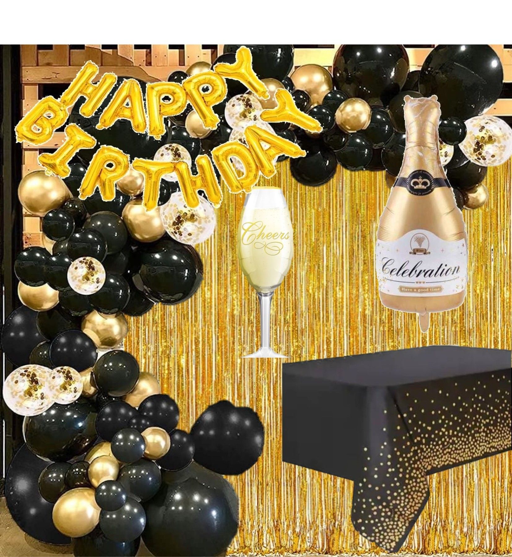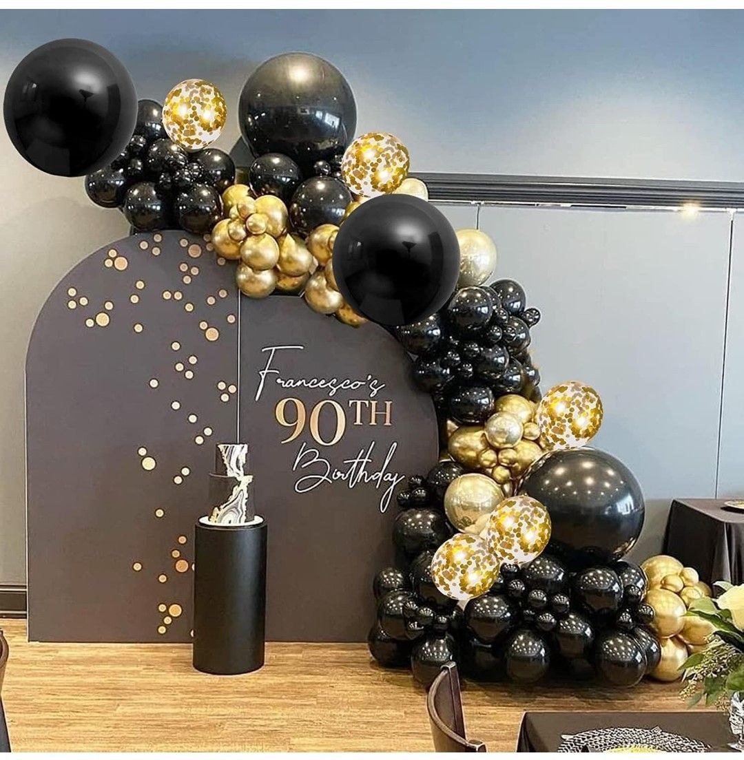 Girlande Ballonbogen schwarz gold Party Set Deko Geburtstag Feier Tischdecke Vorhang