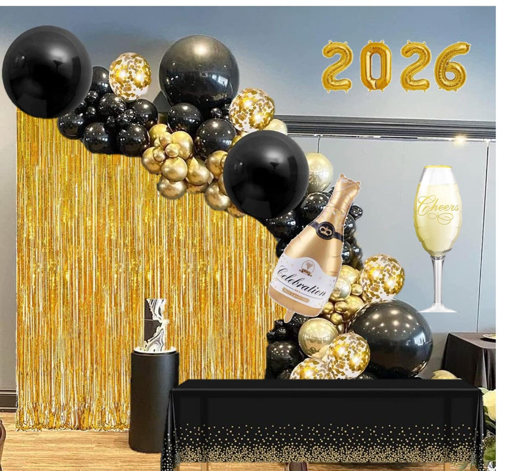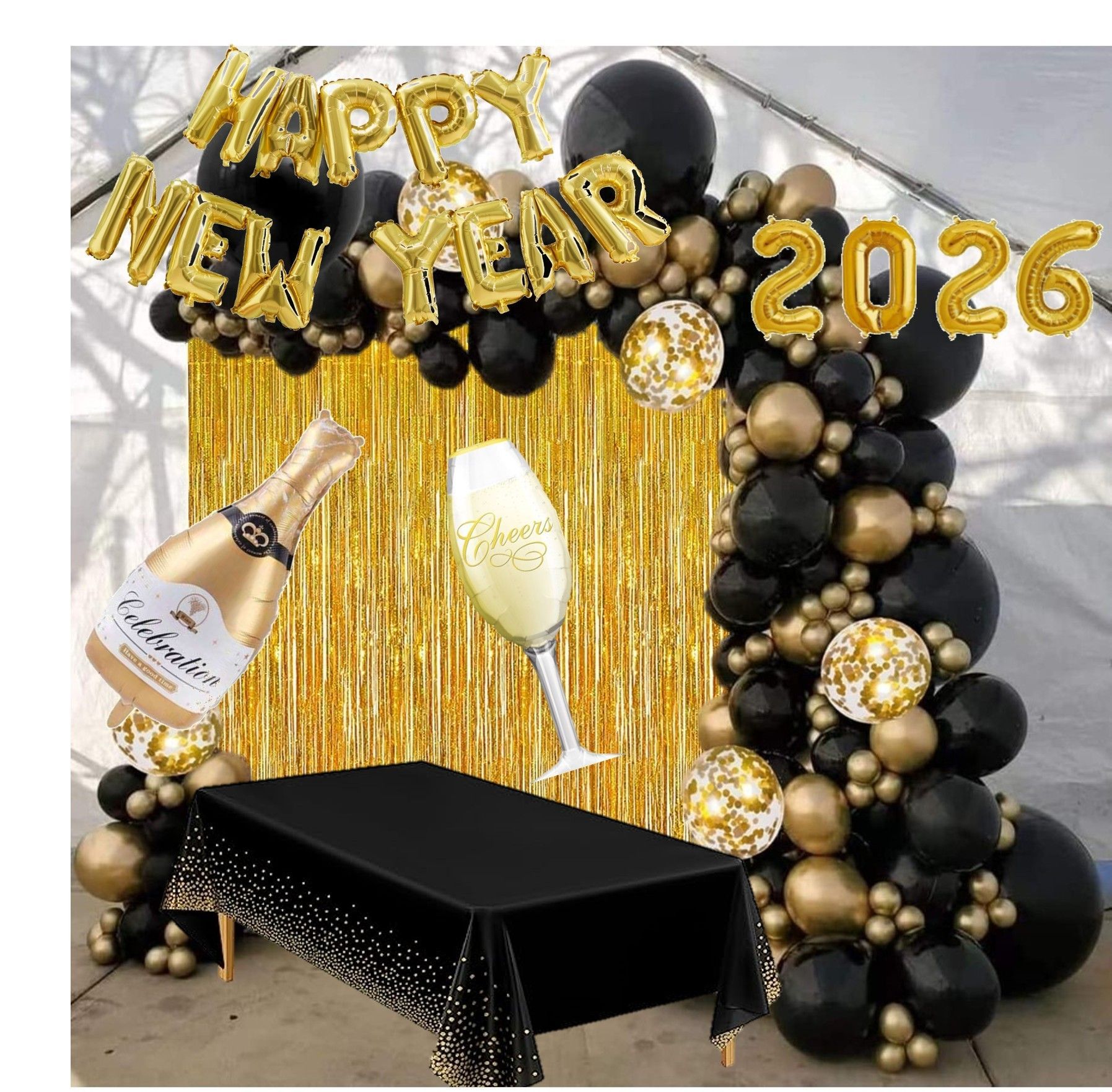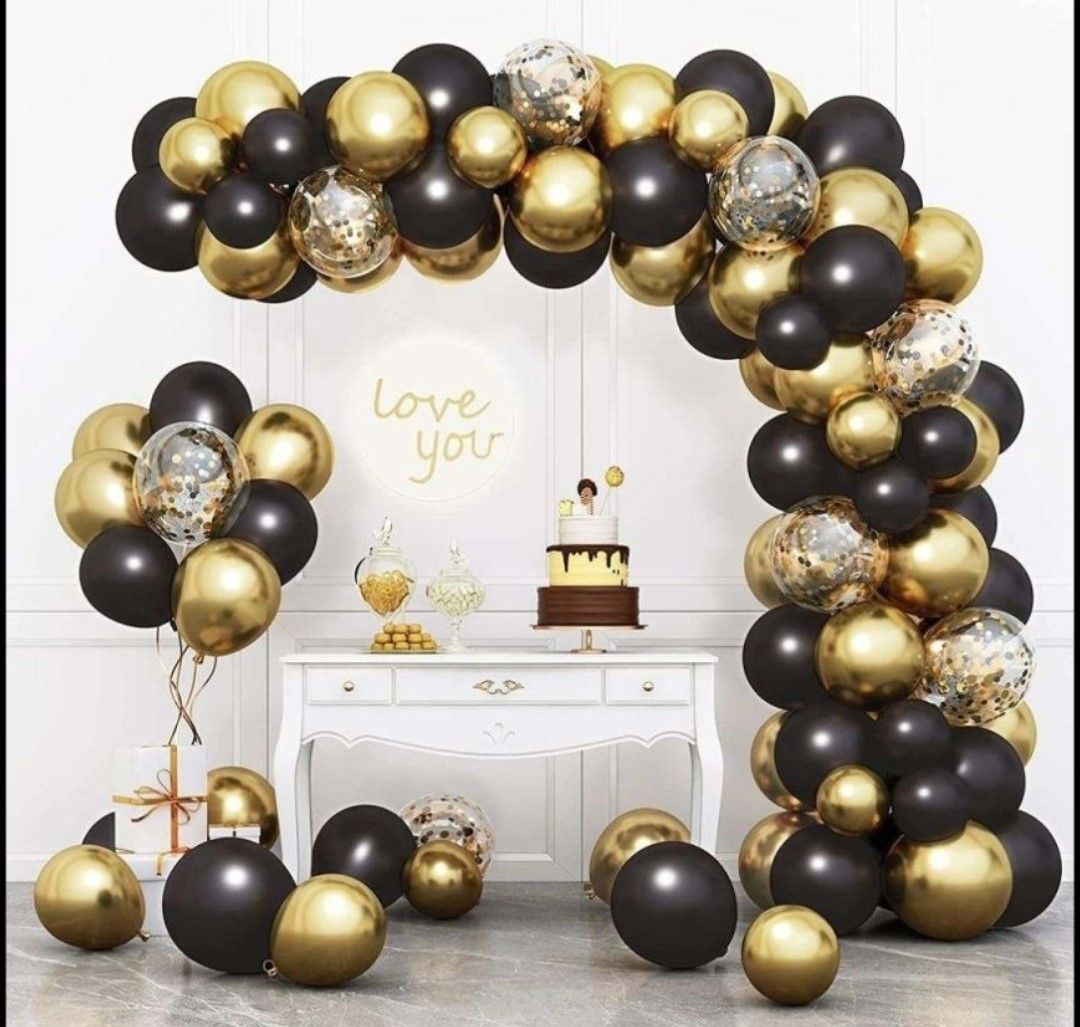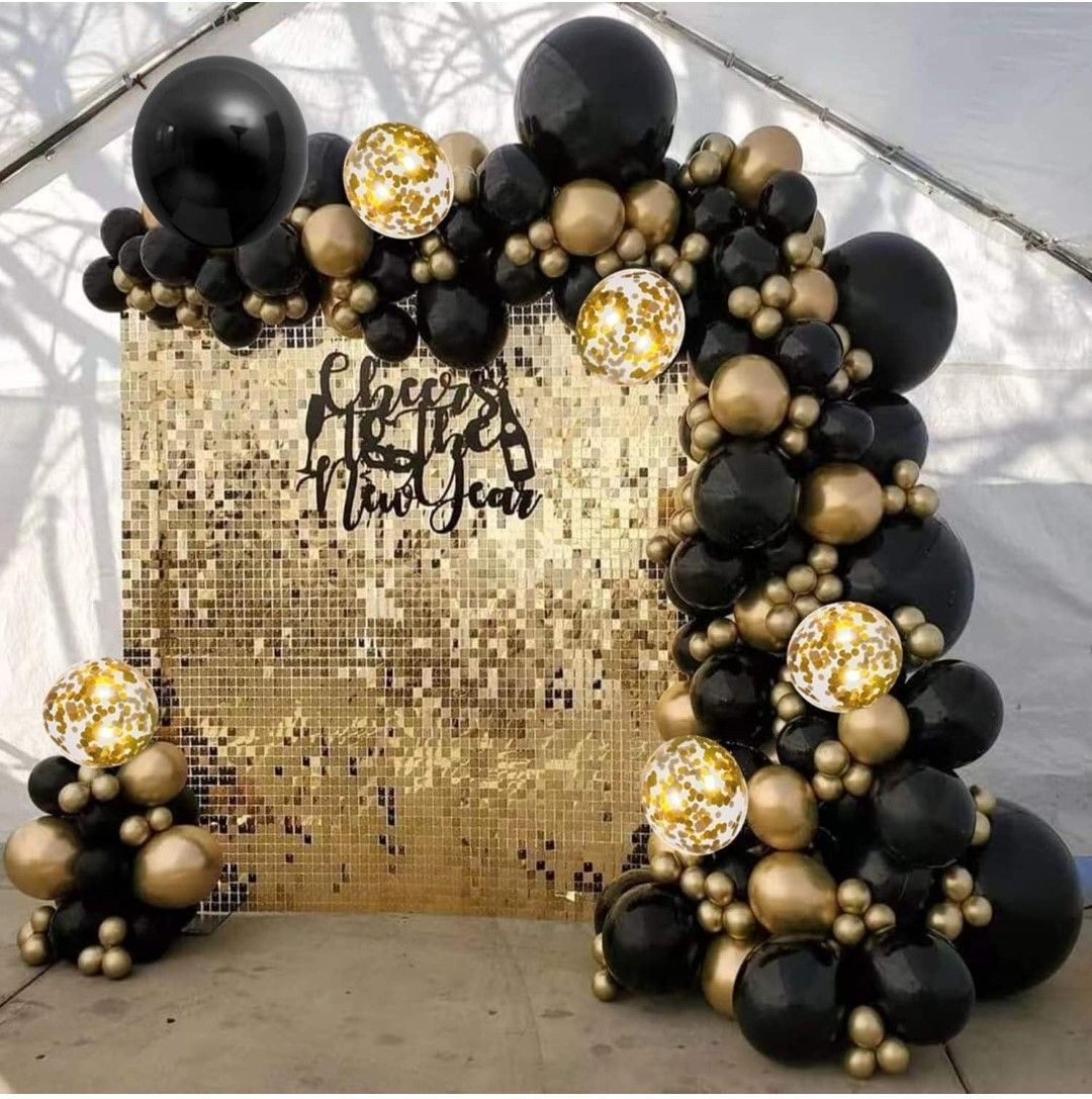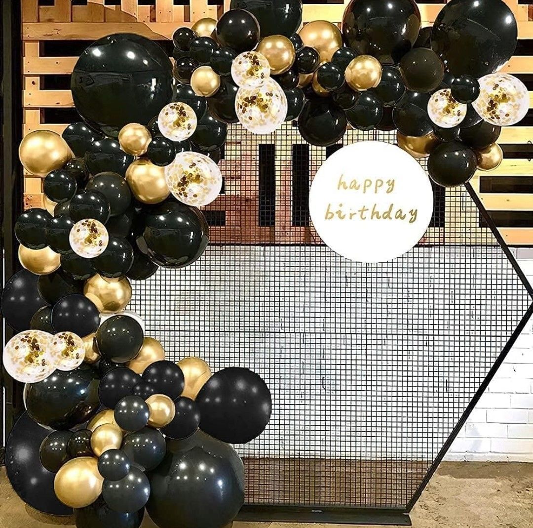 Girlande Ballonbogen schwarz gold Party Set Deko Geburtstag Feier Tischdecke Vorhang