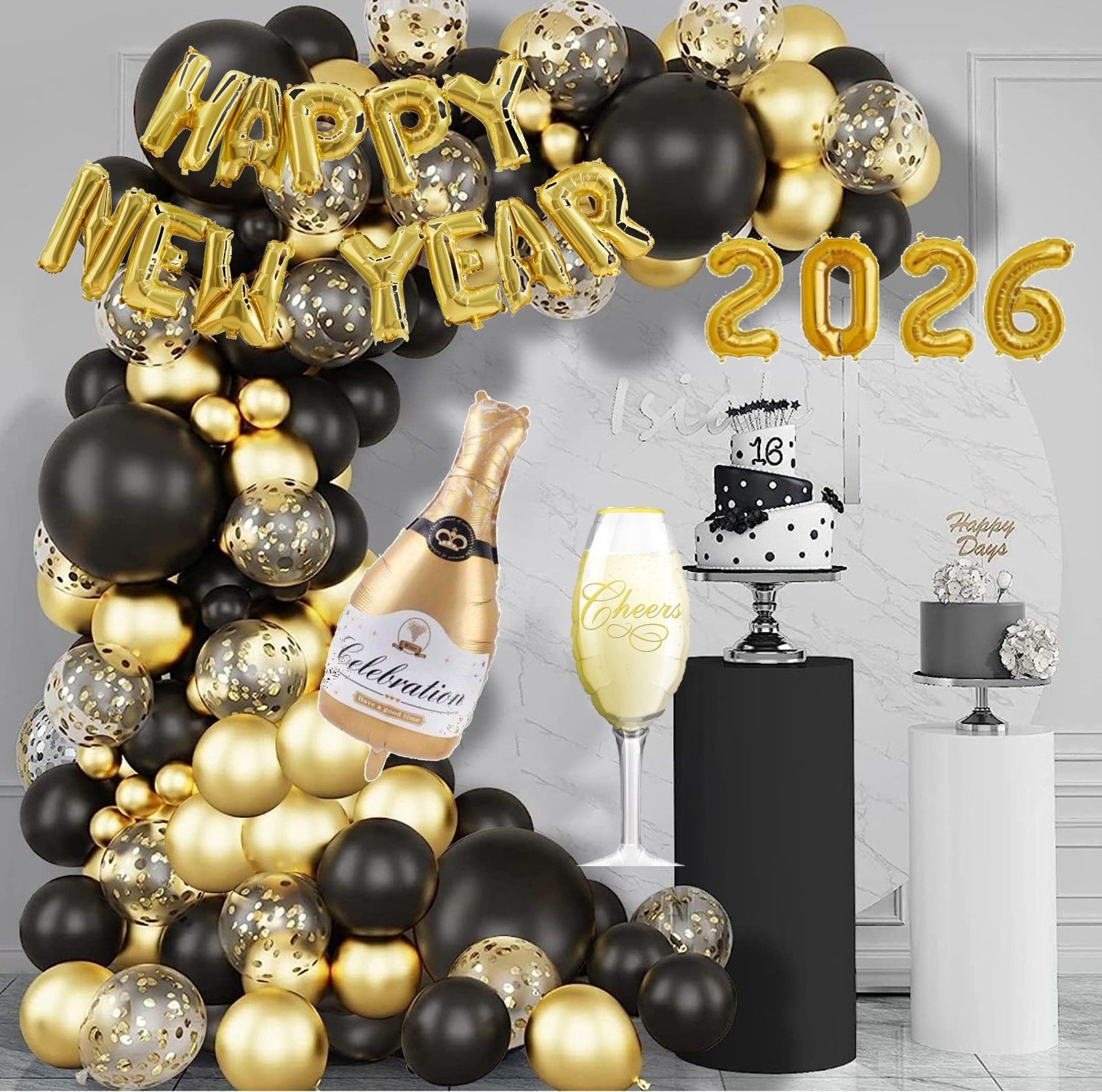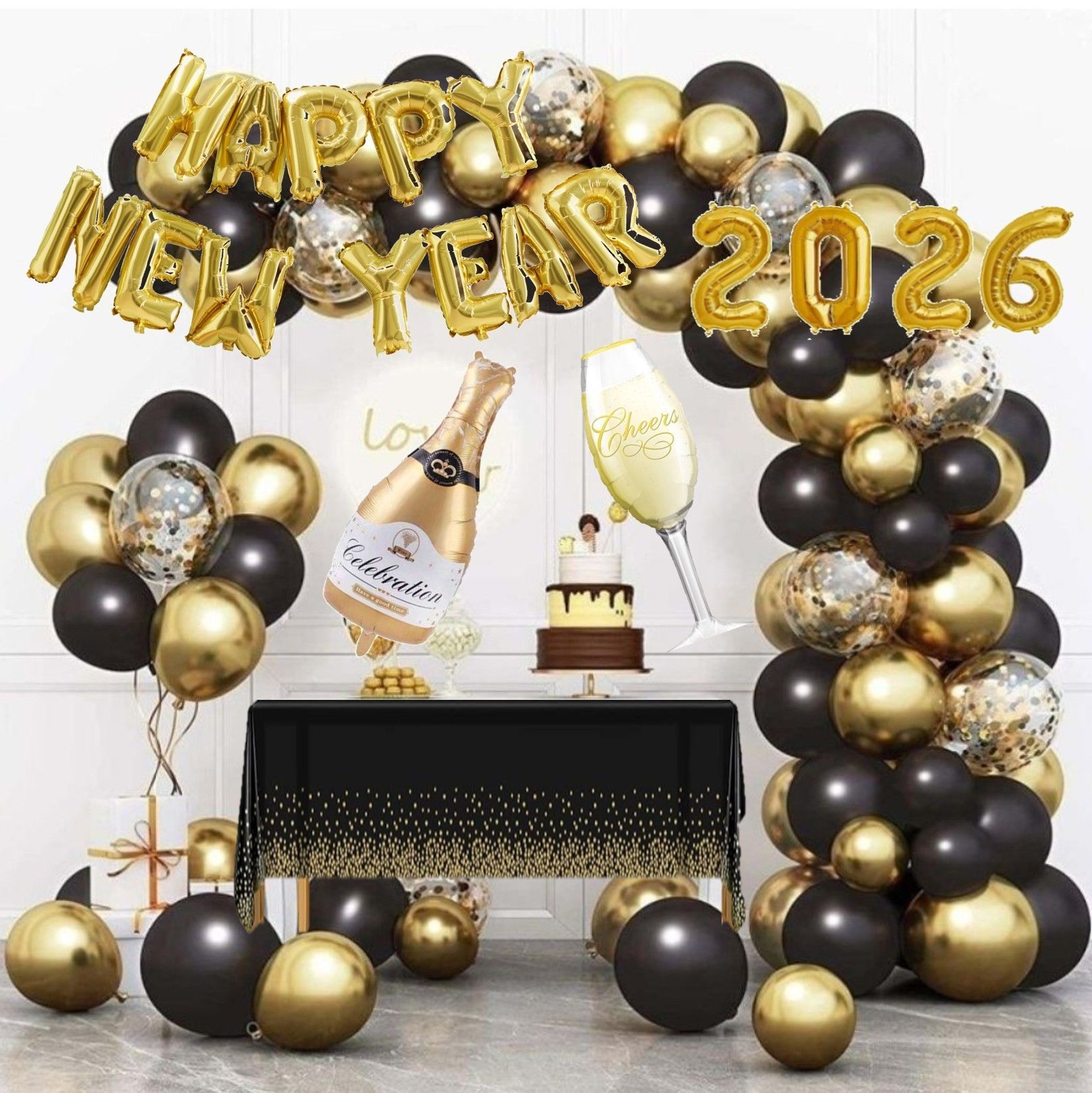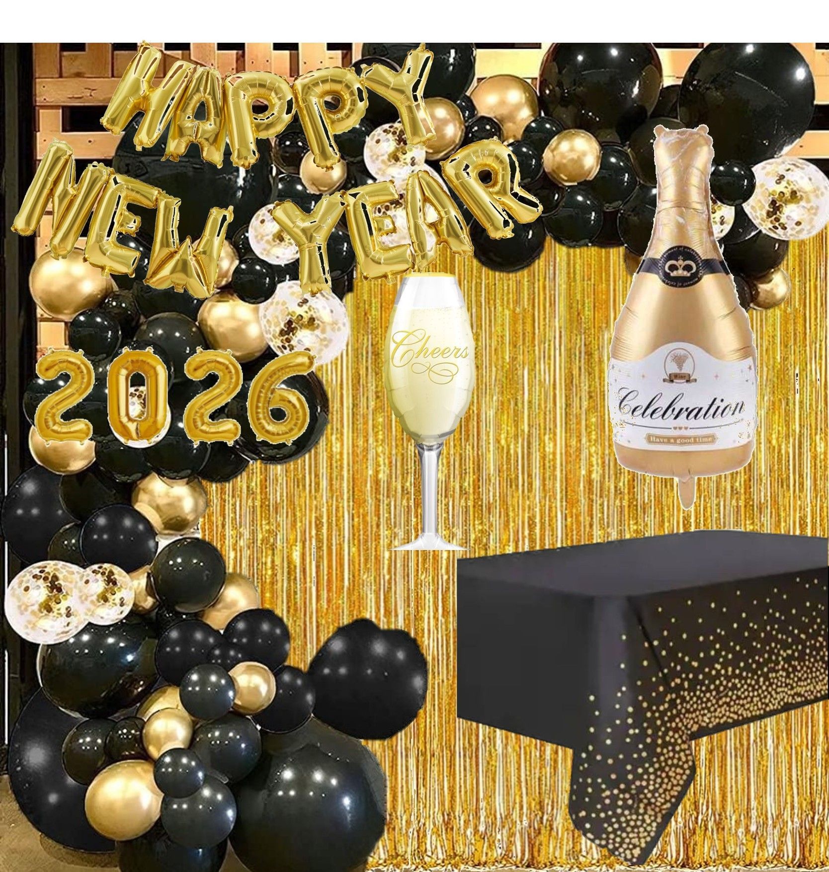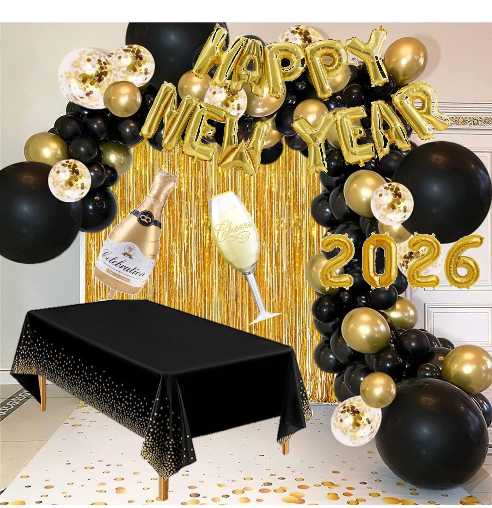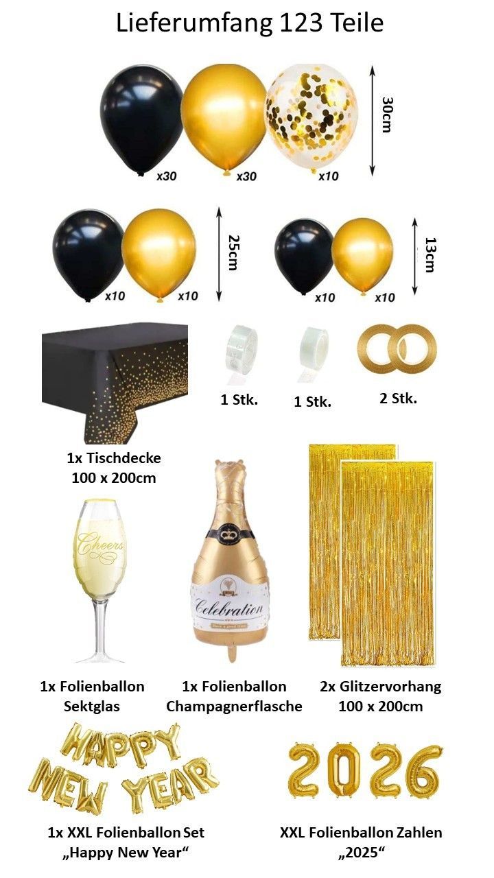 Girlande Ballonbogen schwarz gold Party Set Deko Geburtstag Feier Tischdecke Vorhang