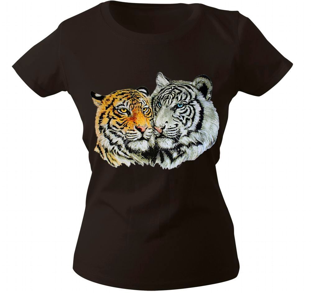 Girly-Shirt mit Print - Tiger - 10848 - versch. farben zur Wahl - schwarz / XS