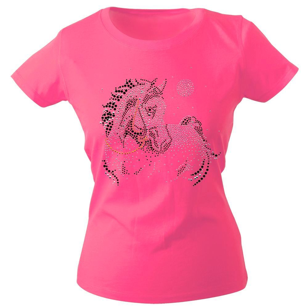 Girly-Shirt mit Strasssteinen Glitzer Pferd Horse Stute G88332 Gr. rosa / XL