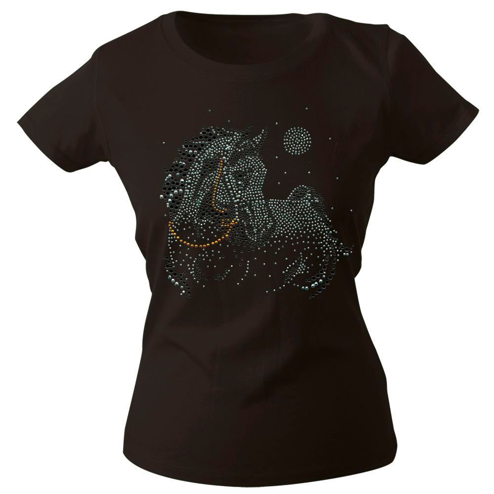 Girly-Shirt mit Strasssteinen Glitzer Pferd Horse Stute G88332 Gr. schwarz / XL