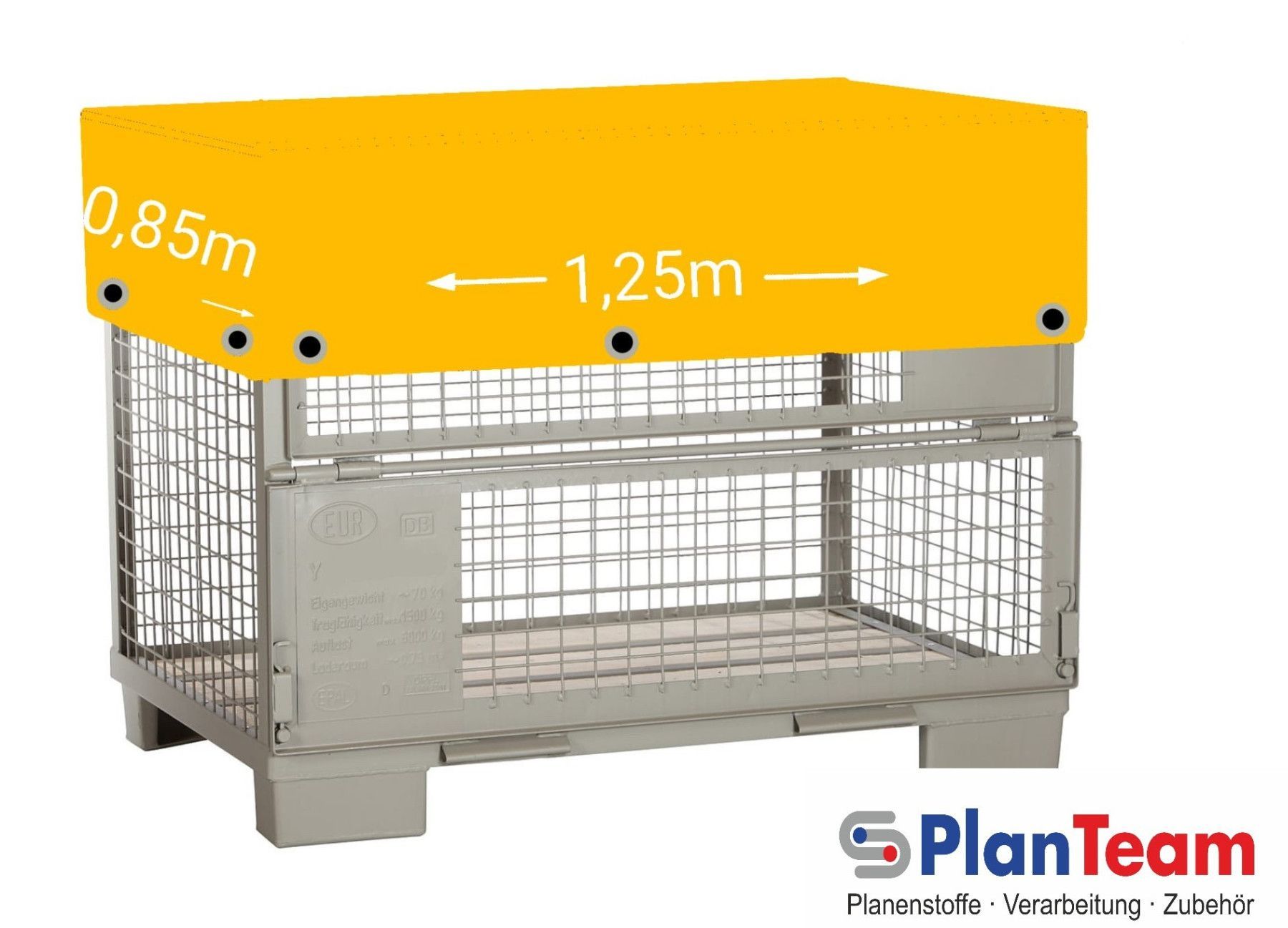 Gitterbox-Abdeckung aus robuster PVC-LKW-Plane – Maßanfertigung. Geeignet für Euro-Gitterboxen (ca. 1,25 × 0,85 m) und Industriegitterboxen. Wasserabweisend, UV-beständig und langlebig. Mit seitlichen Ösen zur Befestigung. Farben: Anthrazit, Grün, Blau, Gelb. Ideal für Lager, Logistik, Industrie & Außenbereich. ?? Maßanfertigung – keine Rücknahme.