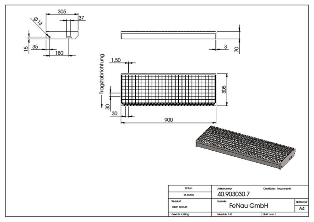 Gitterroststufe Treppenstufe Maße: 900x305 mm 30/30 mm S235JR (St37-2), im Vollbad