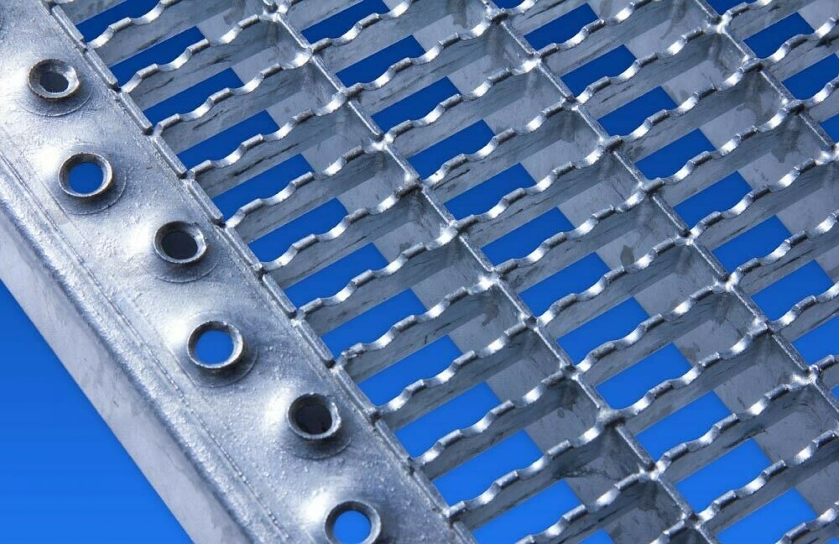 Gitterroststufe verzinkt 600x240mm Maschenweite 30x30mm mit GLEITSCHUTZ
