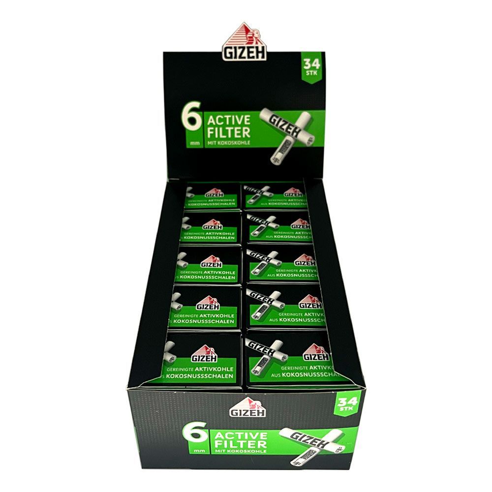 10 x Gizeh Active Filter mit Kokoskohle Die Active Slim Filter sind besonders geeignet in Verbindung mit King Size Filterpapieren. Mit der Nutzung von Kokossnussschalen bei der Herstellung der Aktivkohle wird hier ein nachwachsender Rohstoff Die beiden Keramikkappen auf beiden Seiten verfügen jeweil