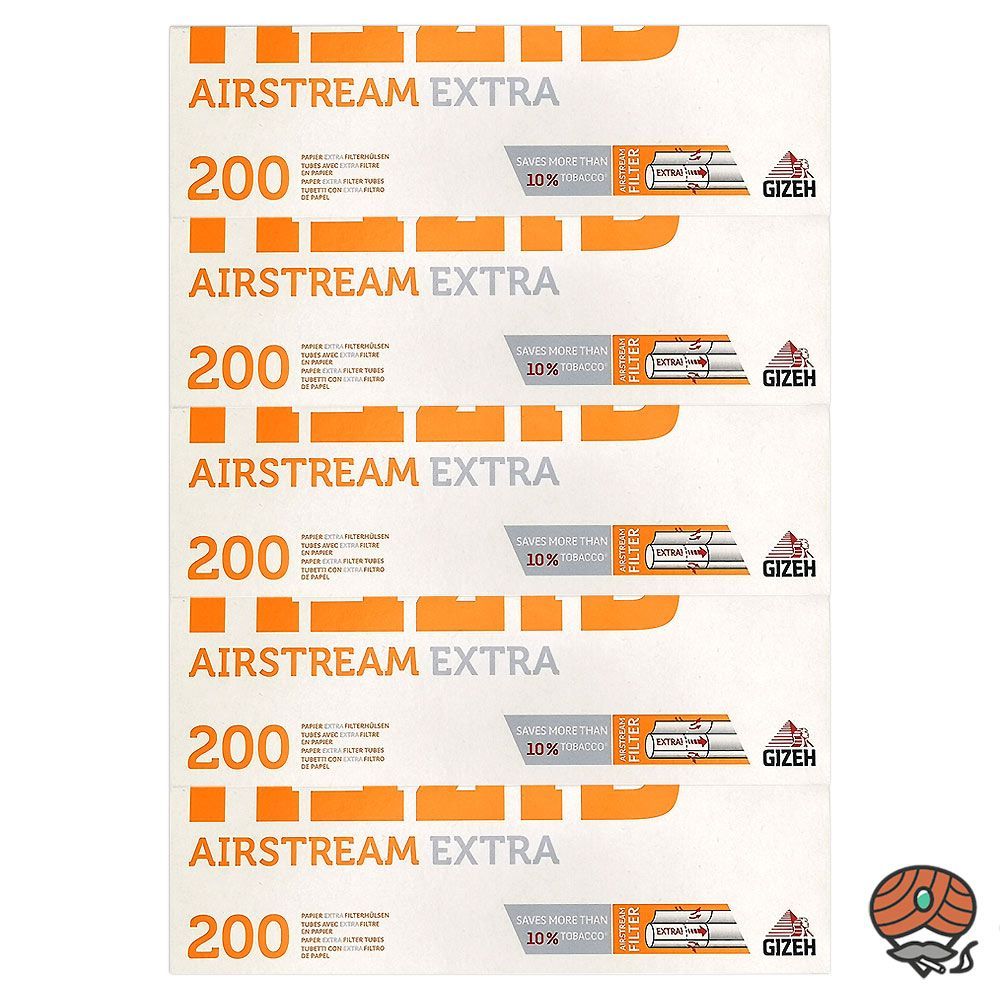 2.000 Gizeh Airstream Extra Papier-Filterhülsen Tubes + 1 Zigarettenbox (nicht wählbar) Produktart: Papier-Filterhülsen zum selber Stopfen von Zigaretten Inhalt : 10 Packungen Gizeh Airstream Extra Papier-Filterhülsen à 200 Stück = 2.000 Hülsen 1 Zigarettenbox Beschreibung: Marke: Gizeh Gizeh Airstr