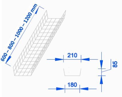 GKA Gitterkabelkanal abklappbar, inkl. Befestigungsbügel, silber
