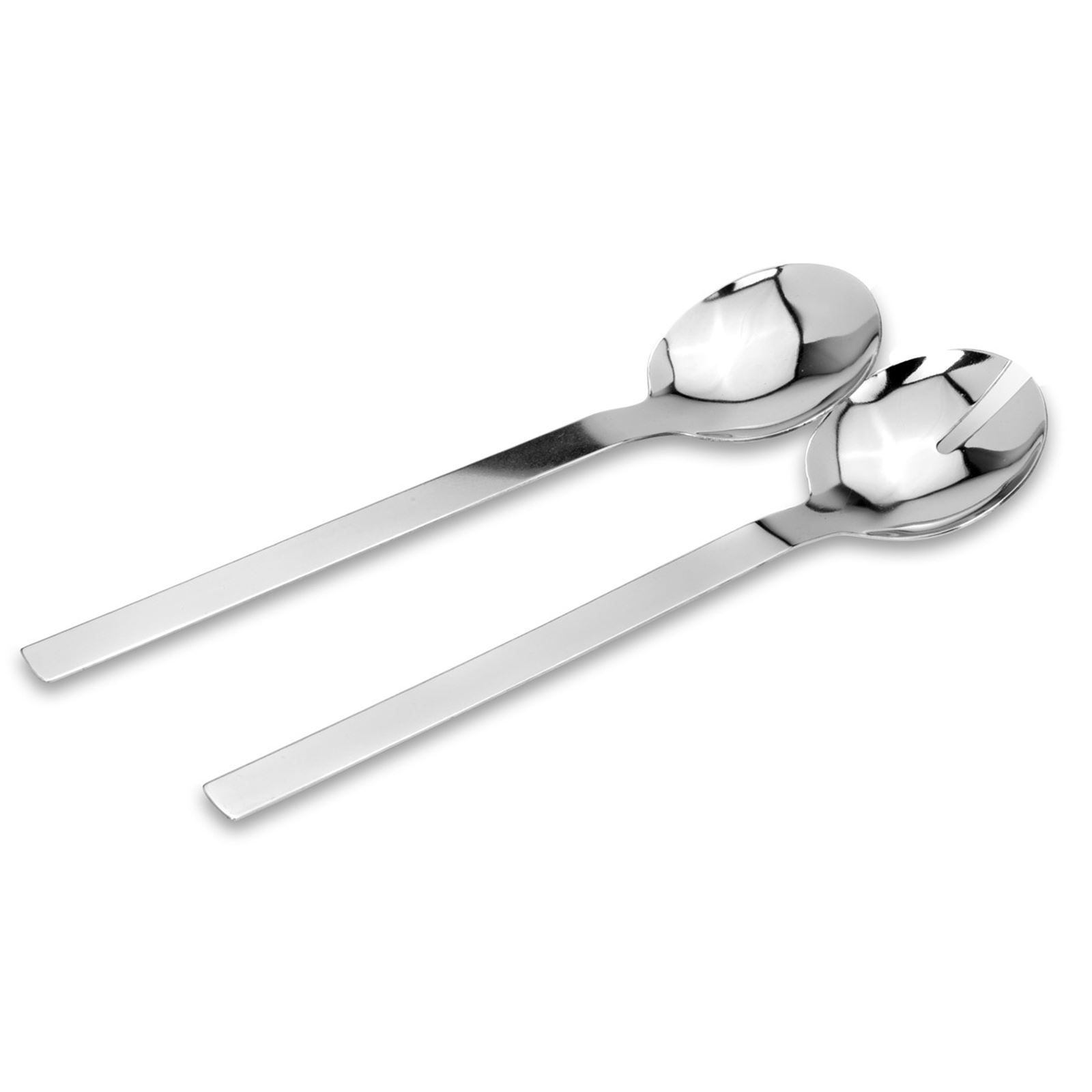 glänzendes 2-teiliges Edelstahl Salatbesteck 28 cm glatt poliert