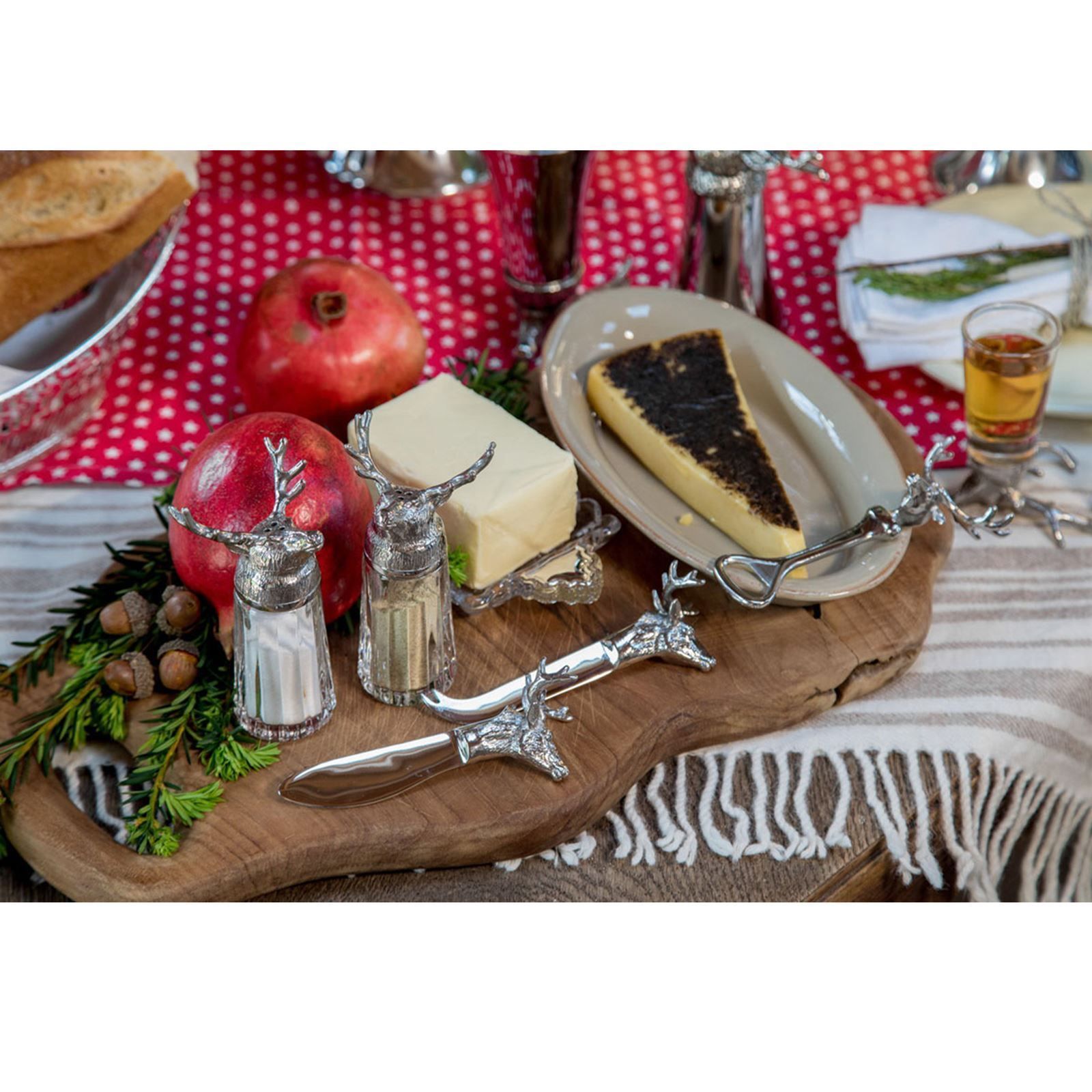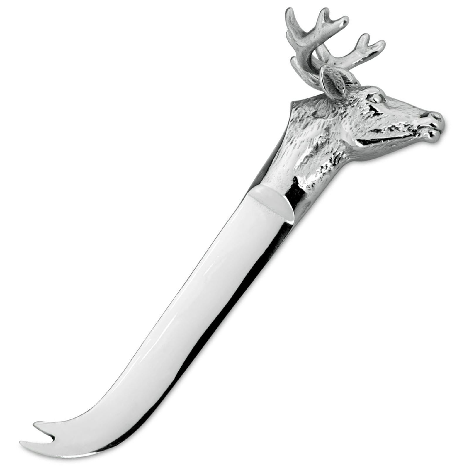glänzendes Edelstahl Käsemesser 14 cm mit Gabelzinken Motiv Hirsch