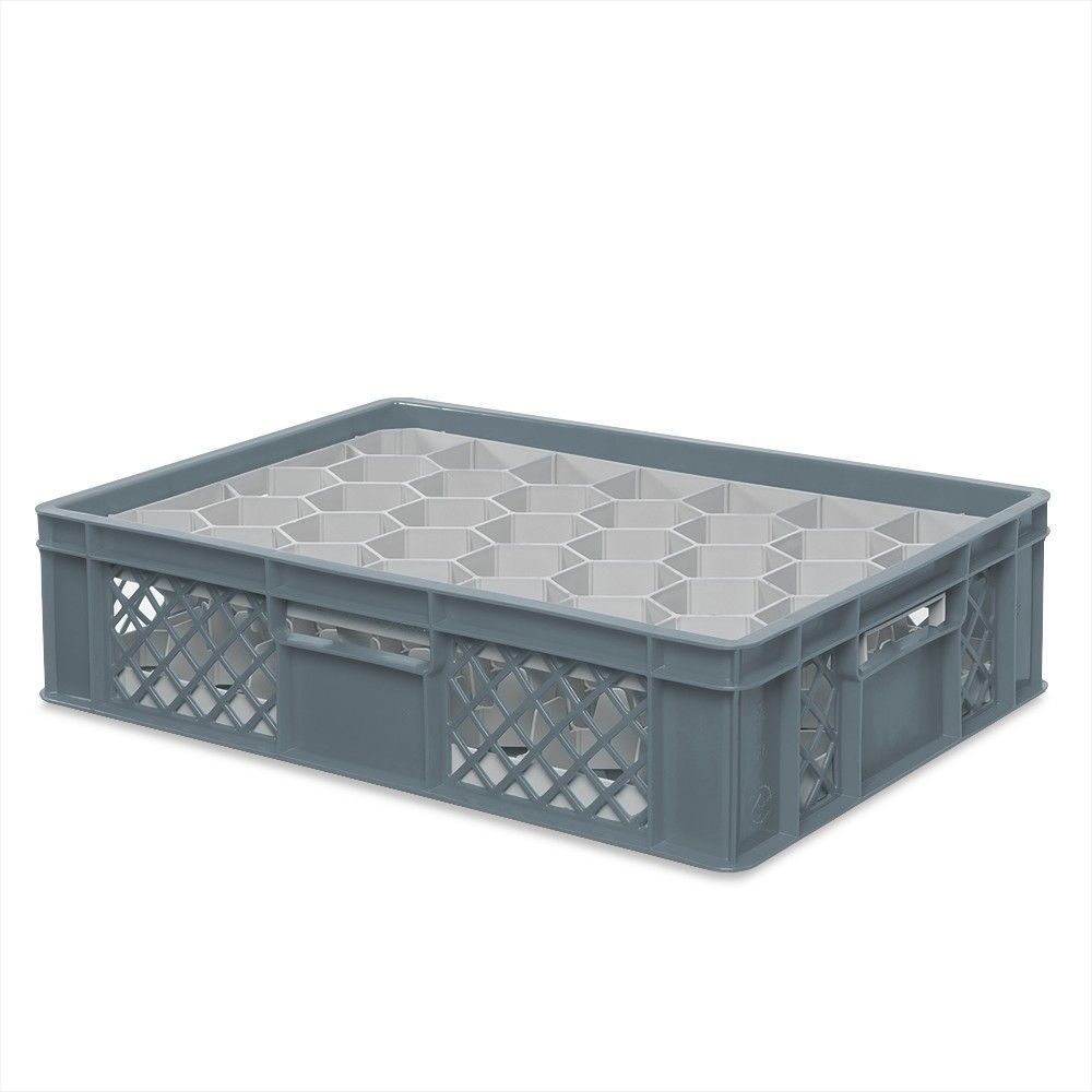 Gläserkiste 600x400 mm für 33 Gläser bis 122 mm Höhe/Durchmesser 75 mm, grau