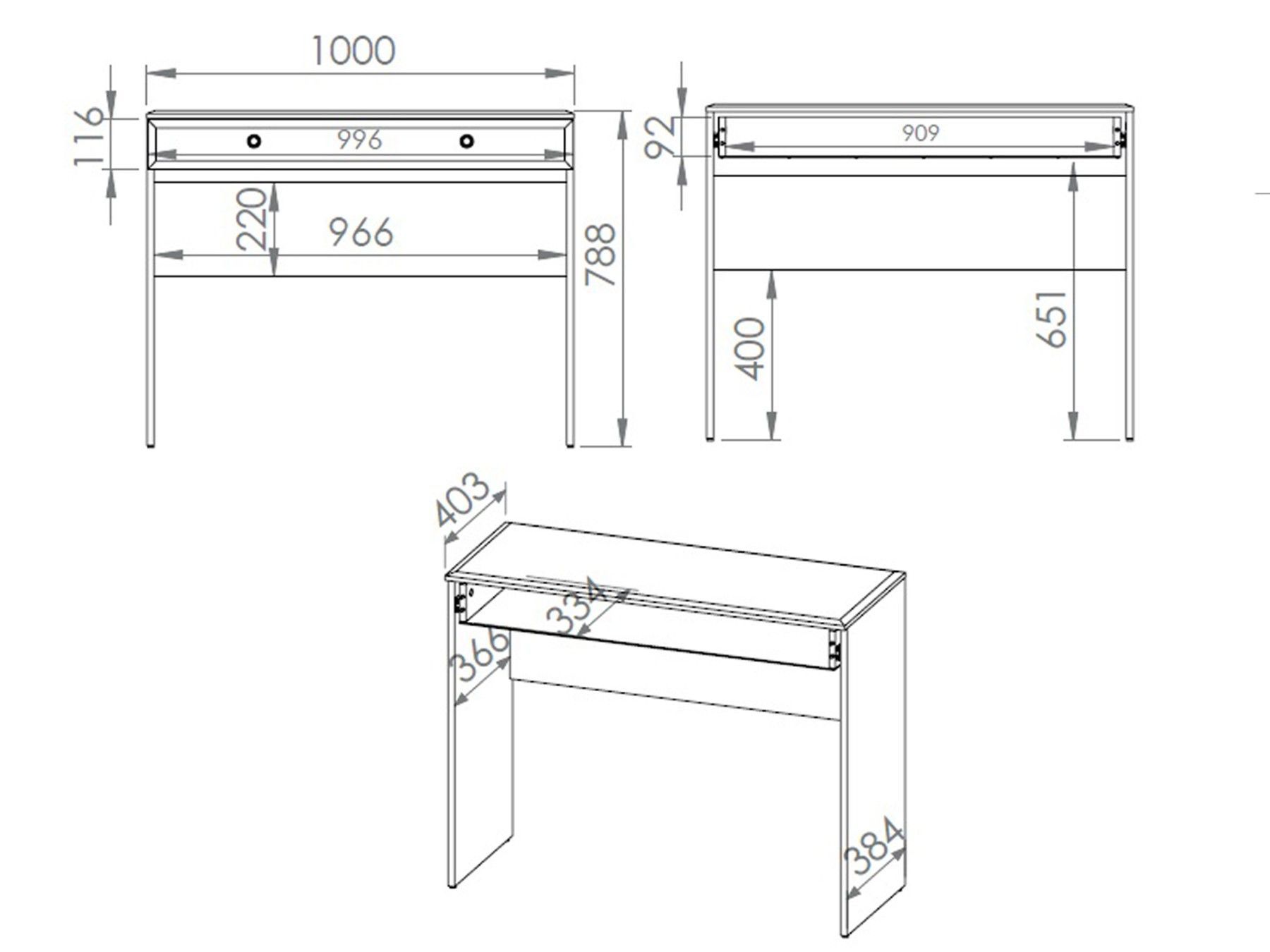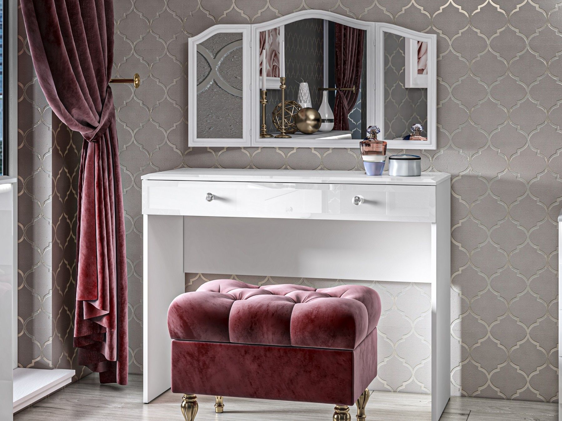 Glamour Schminktisch 05 weiße glänzende Schminktisch mit einer Schublade